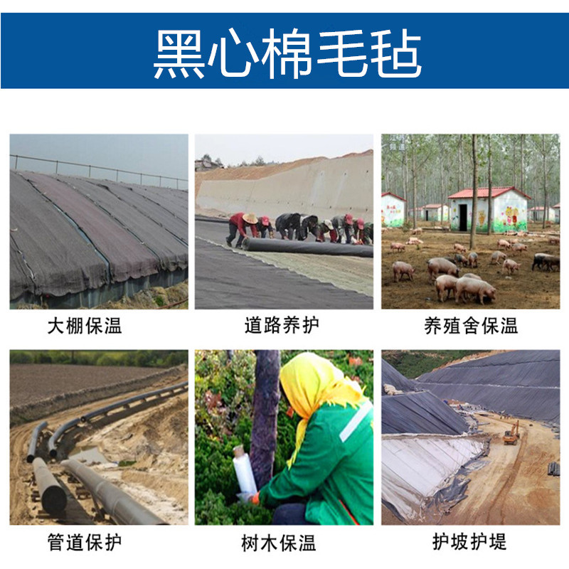 厂家供应黑心棉毛毡布头棉包装毯大棚保温防寒毛毡公路养护毡