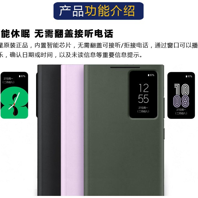 适用s23ultra官方款手机壳s24ultra芯片智能视窗s24+插卡皮套S22