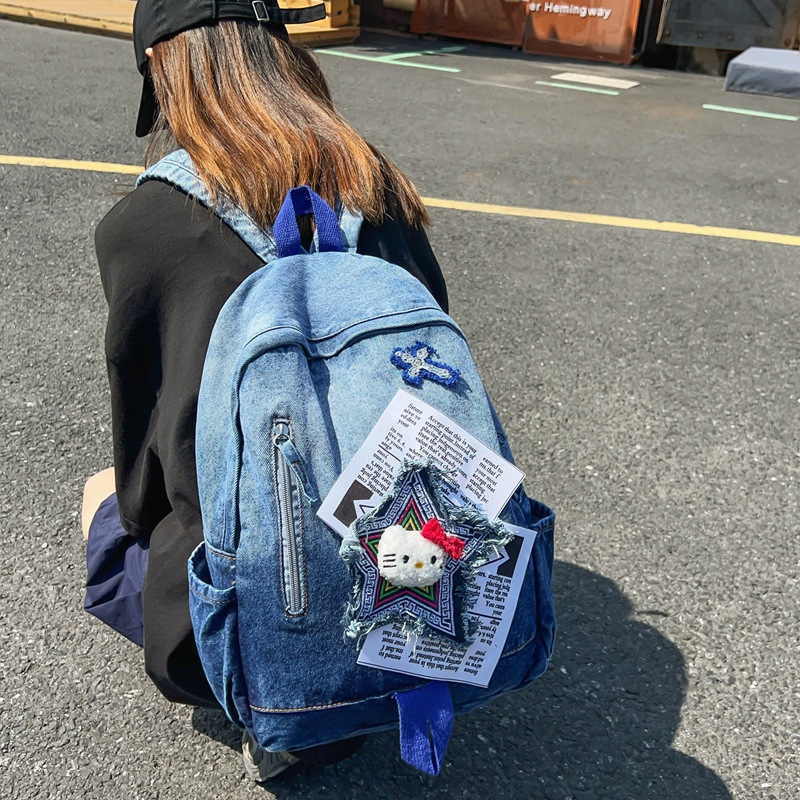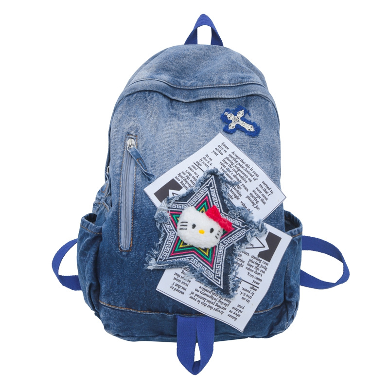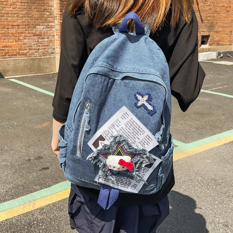 外贸新款休闲牛仔时尚百搭双肩包轻便超轻中学生慵懒风都市简约