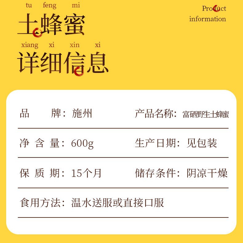 施州湖北恩施富硒野土蜂蜜过节送礼300g*2罐礼盒装硒蜜营养