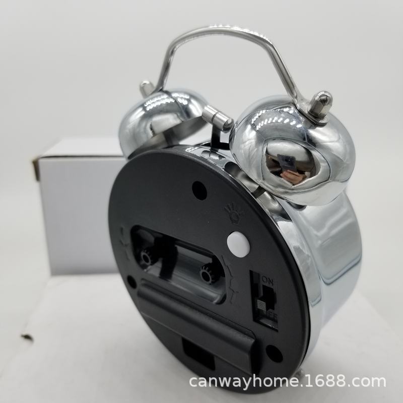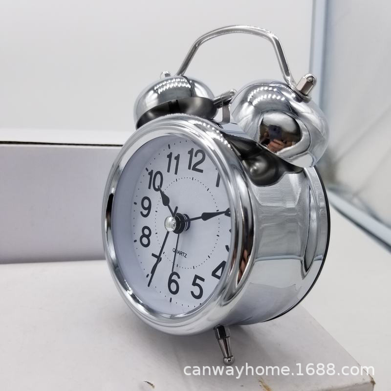 厂家直销静音扫秒电镀小闹钟3寸打铃钟金属学生儿童台钟创意设计