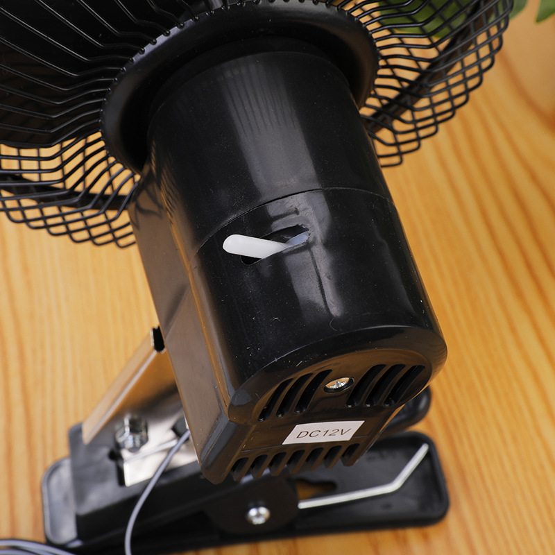 现货夏季散热电风扇6寸汽车车载风扇可摇头夹子全封闭小风扇制冷