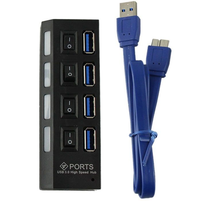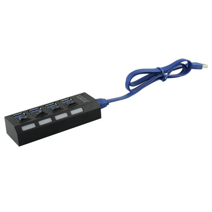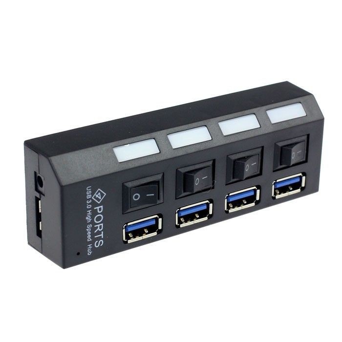 USB3.0HUB 4口分线器 3.0集线器 带开关HUB 电脑分线器极速版黑色