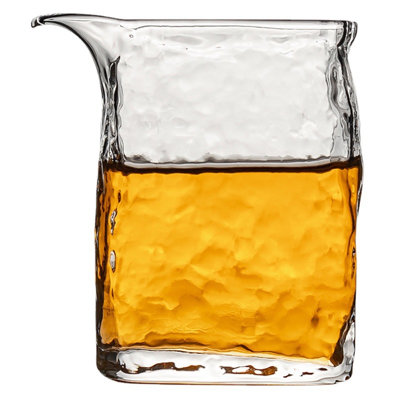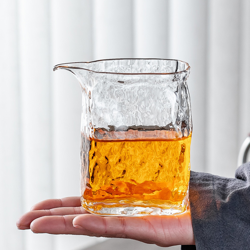 四方玻璃公道杯耐热锤纹加厚分茶器创意功夫茶鹰嘴公道杯家用匀杯