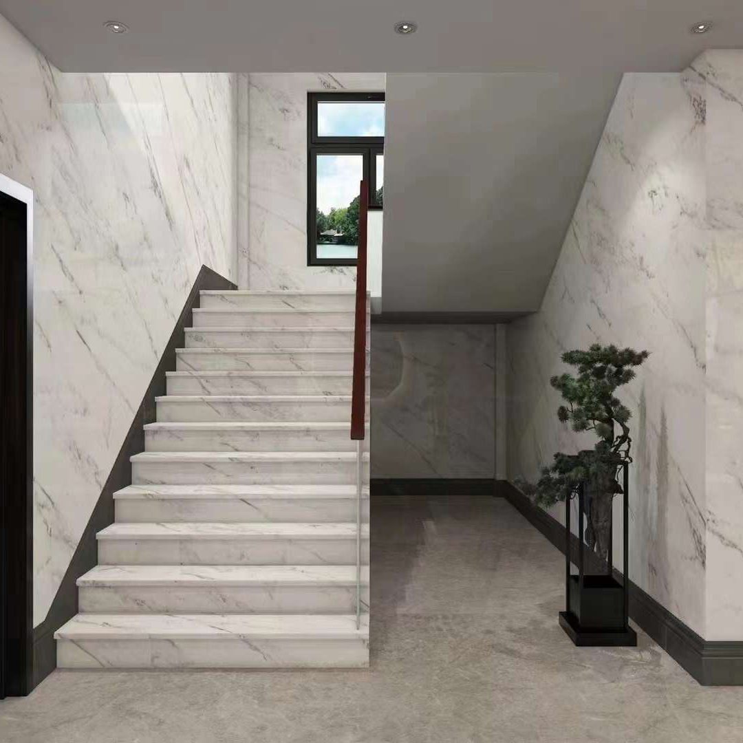 定制天然东方白大理石家装梯步石材 雕刻白色大理石板材地面通铺