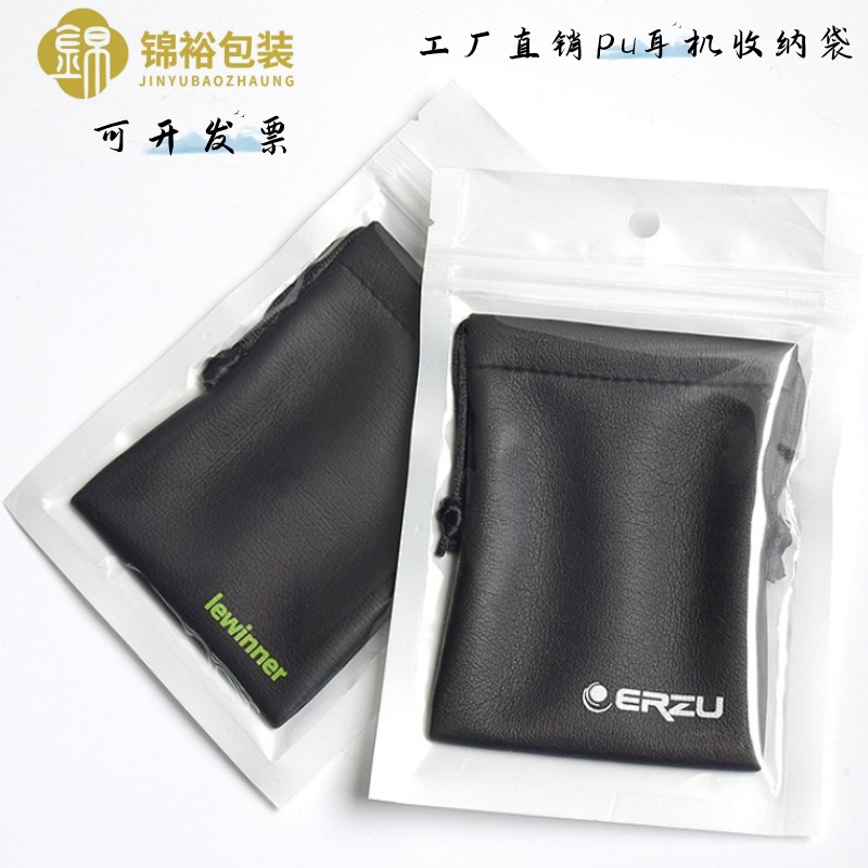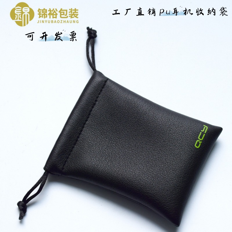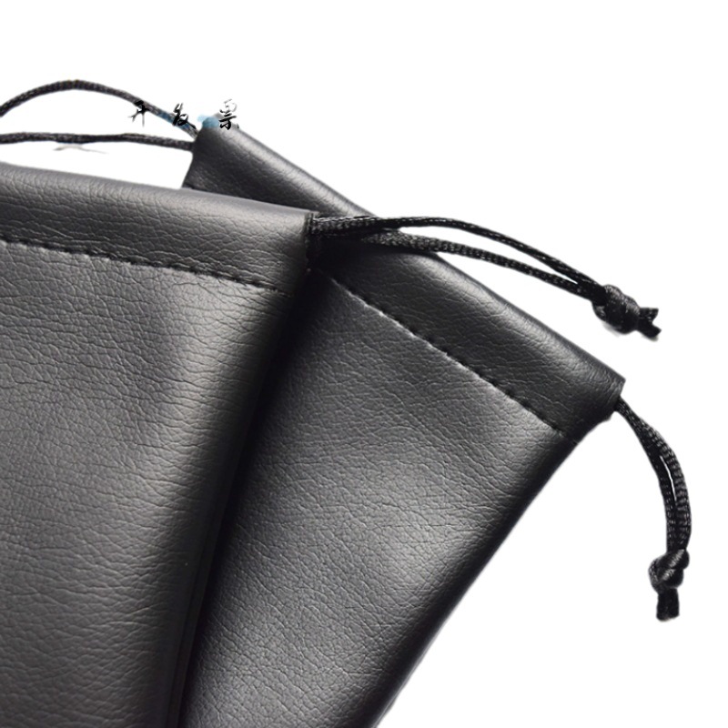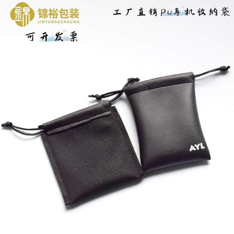 黑色pu皮革束口袋佛珠珠宝包装袋蓝牙耳机收纳袋可印logo便携礼品