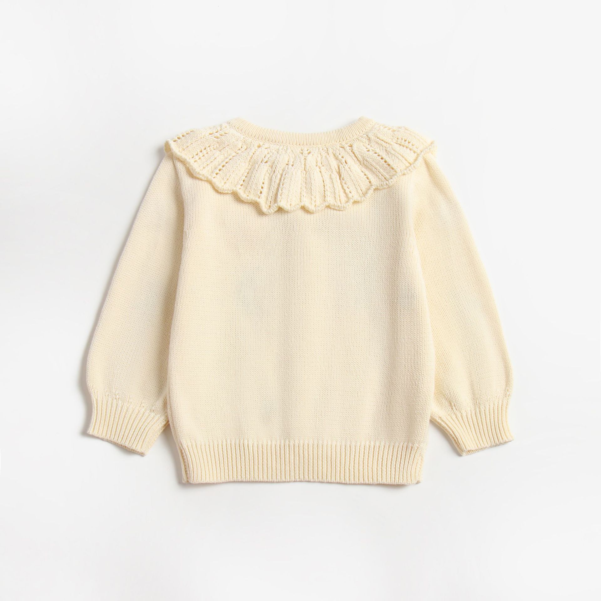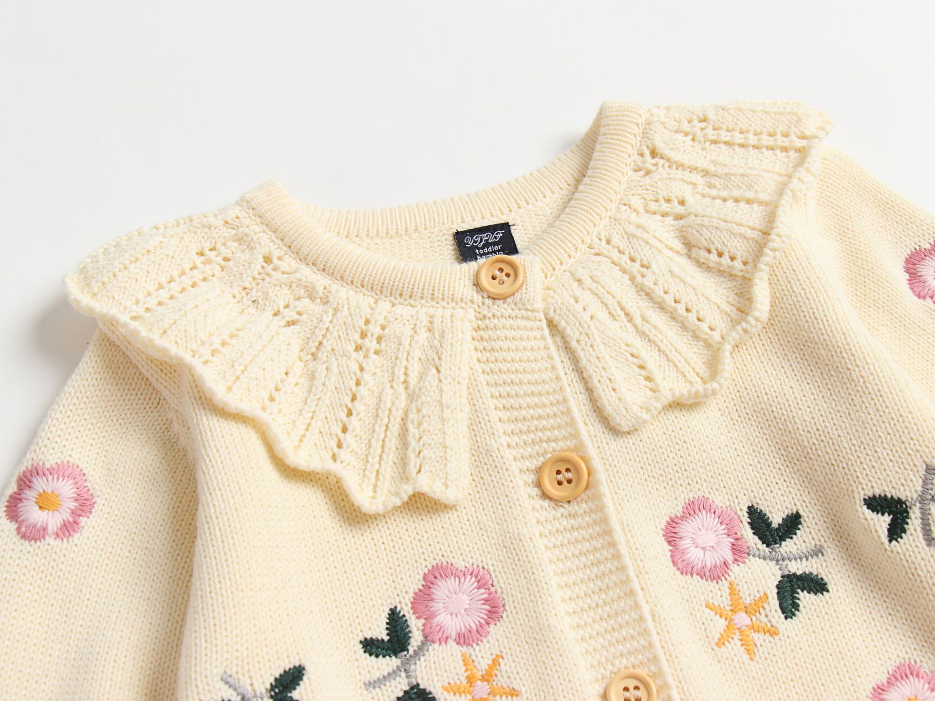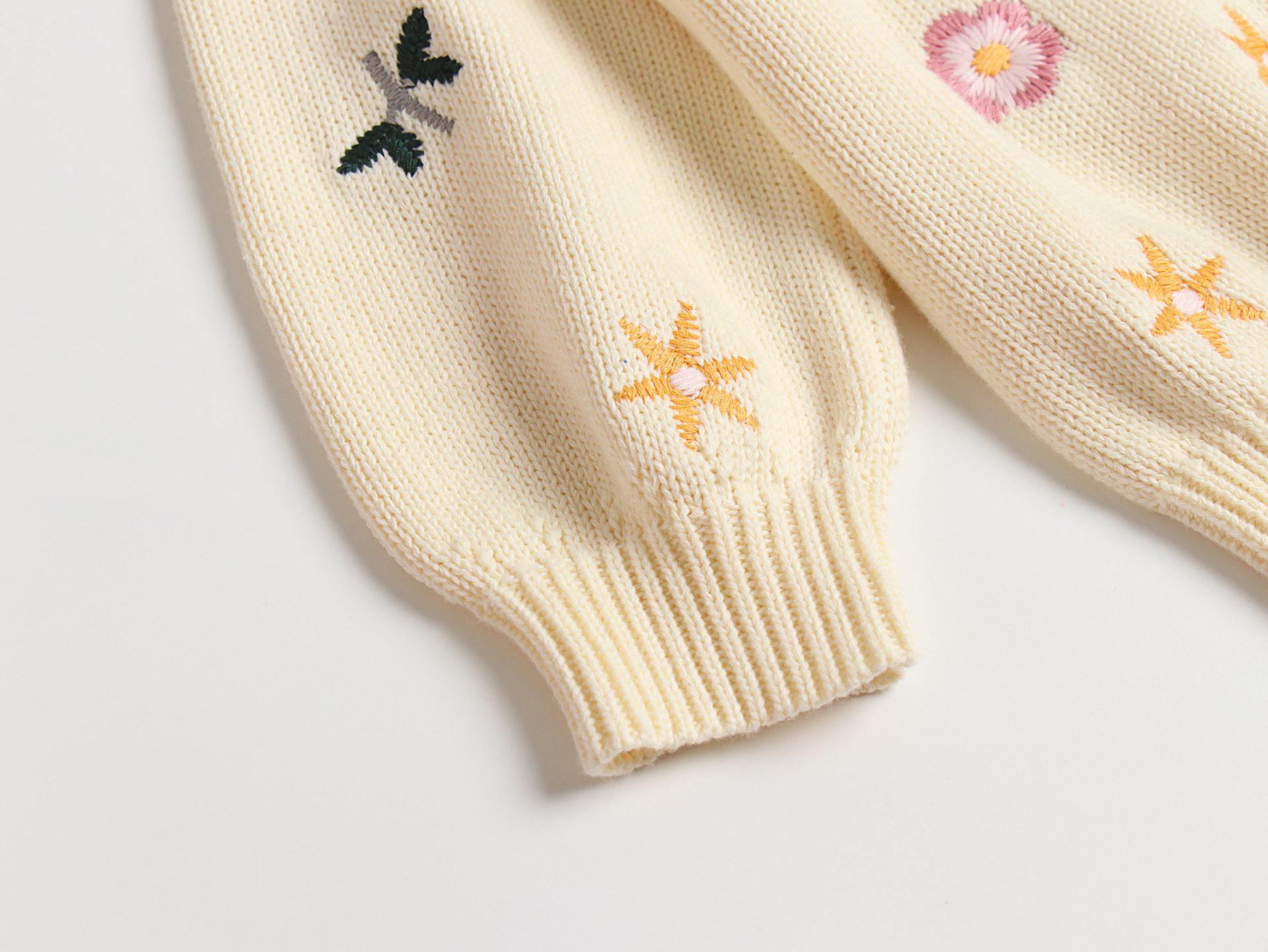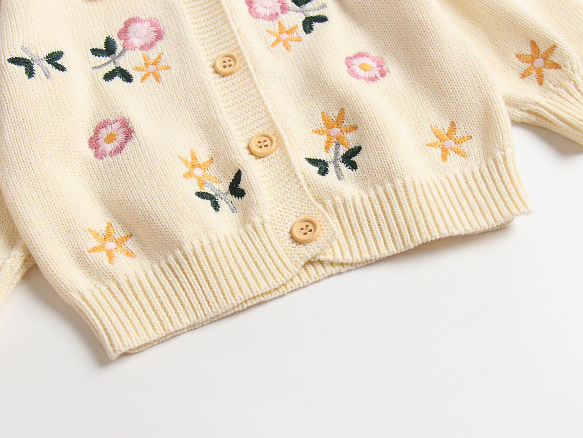 春秋季翻领现货女童宝宝可爱纯色小花不连帽毛线开衫花朵针织衫
