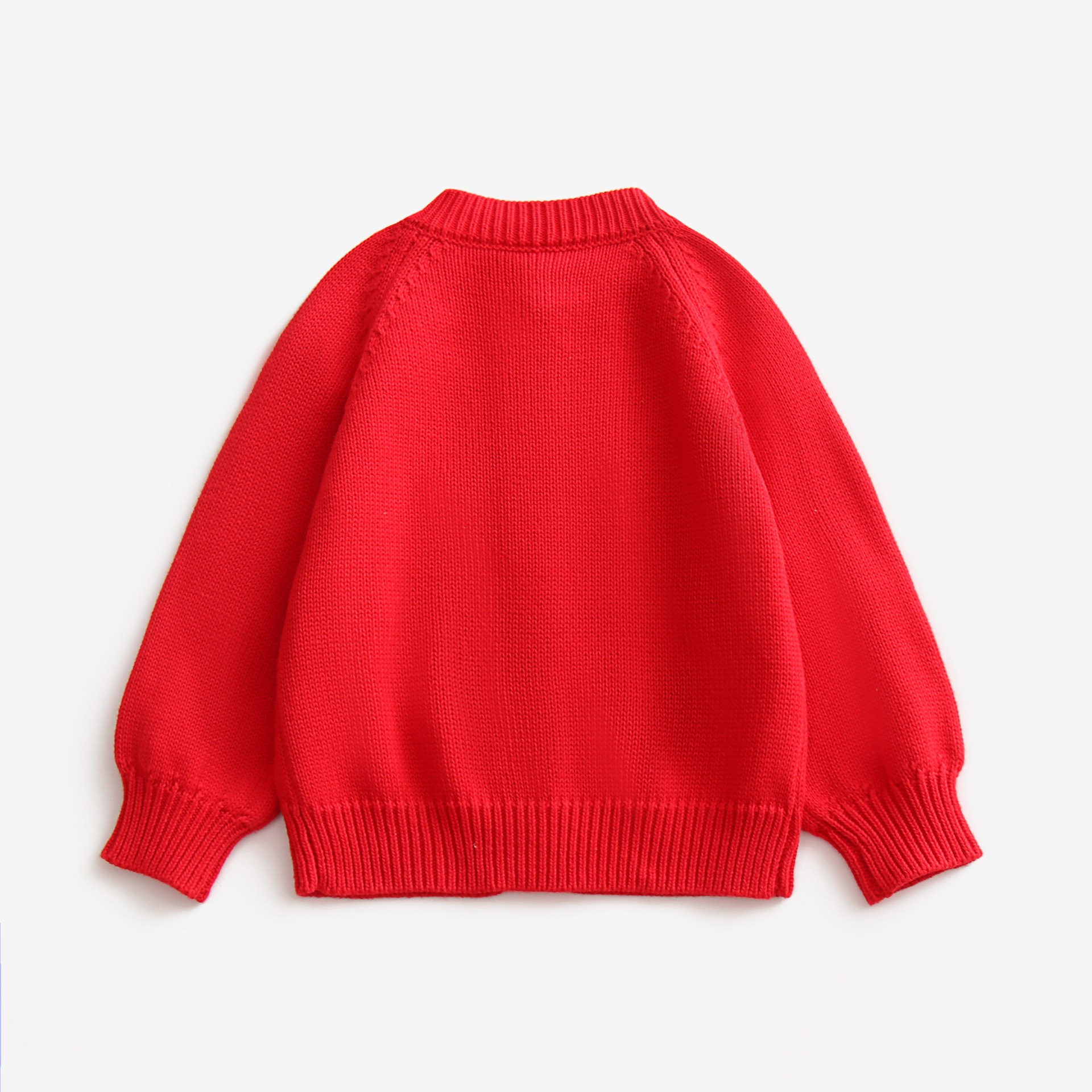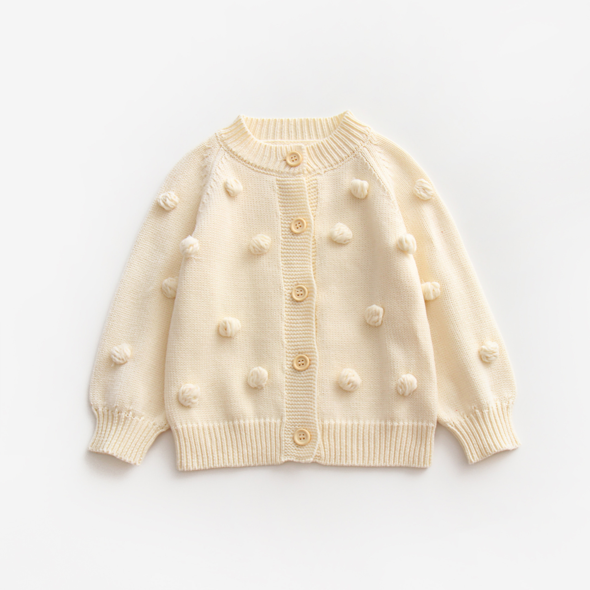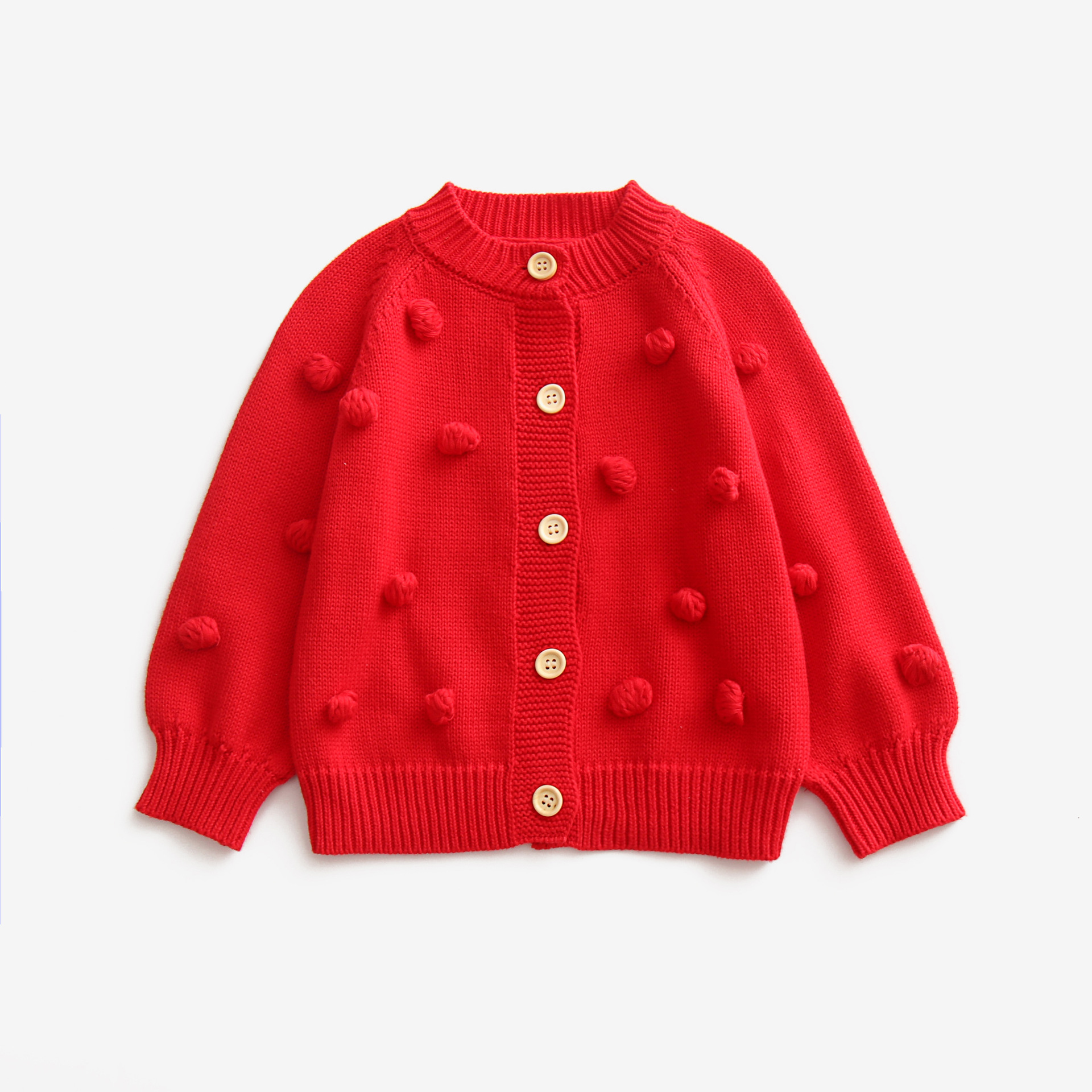 春秋季圆领韩版百搭女童宝宝可爱纯色球球毛线开衫花朵婴儿针织衫