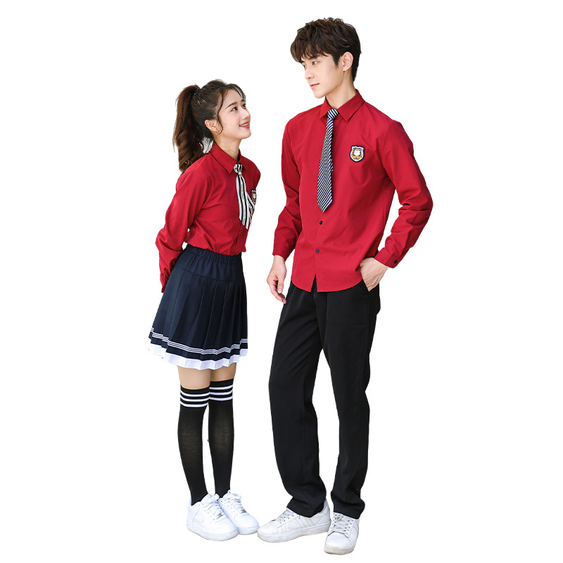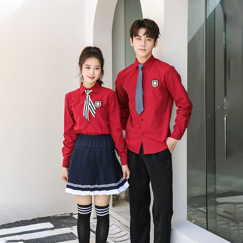 中学生校服 毕业班服红衬衣短裙套装舞台表演服合唱团印logo批发