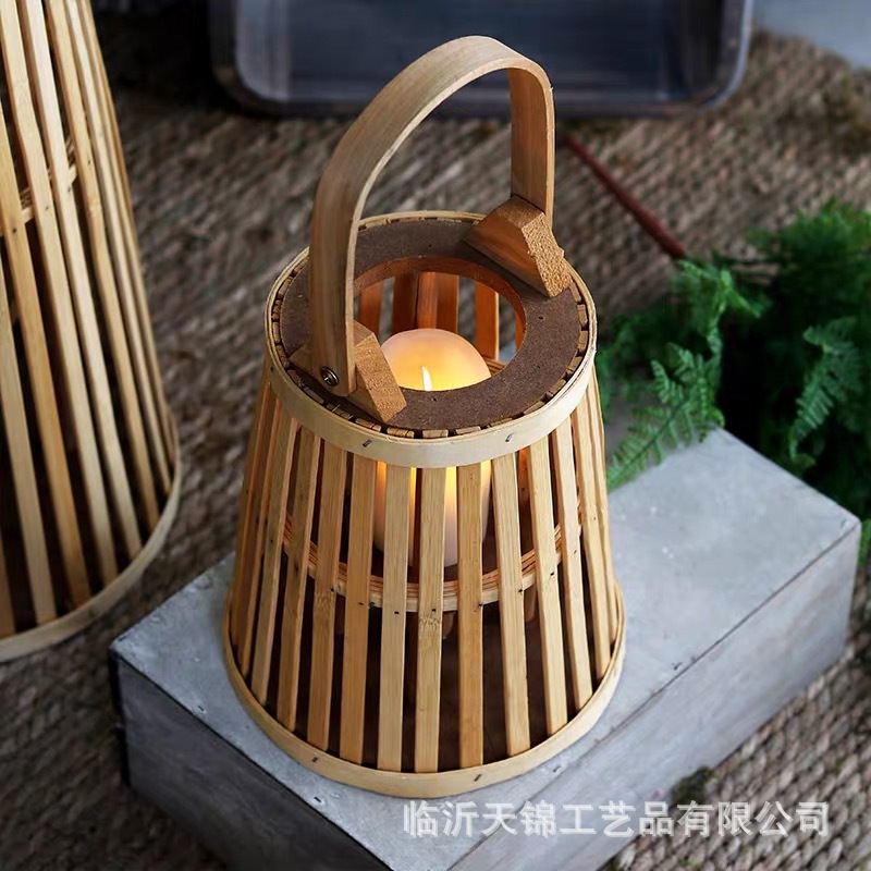 竹编风灯手工编织灯笼创意木制烛台家居庭院民宿装饰摆件手提道具
