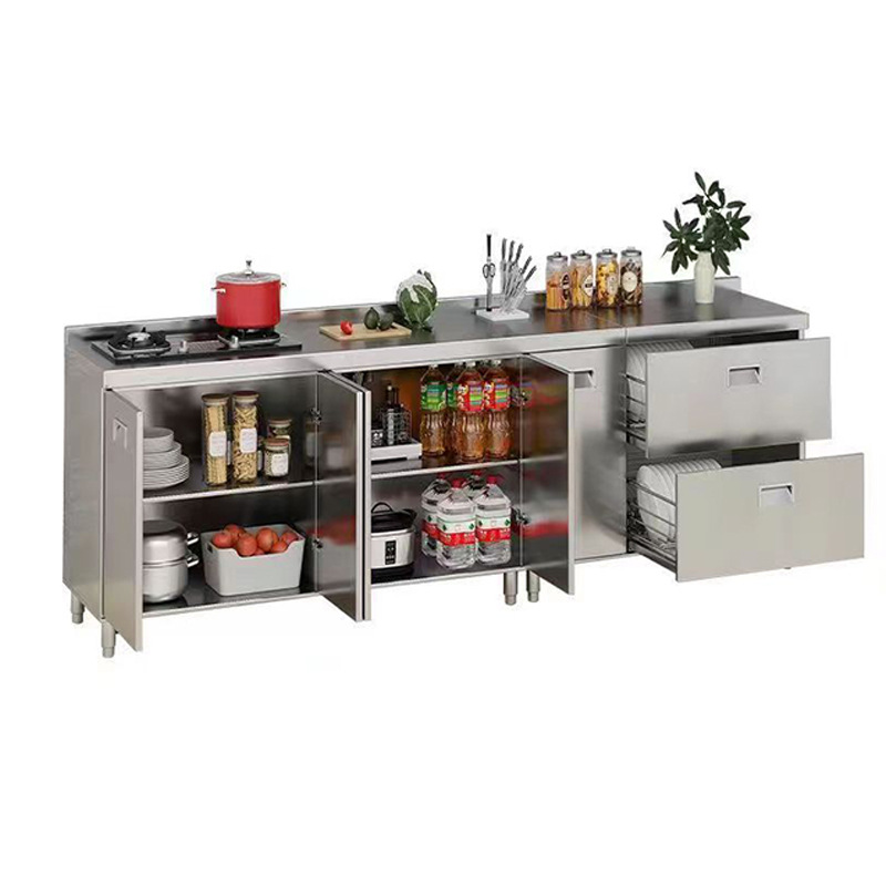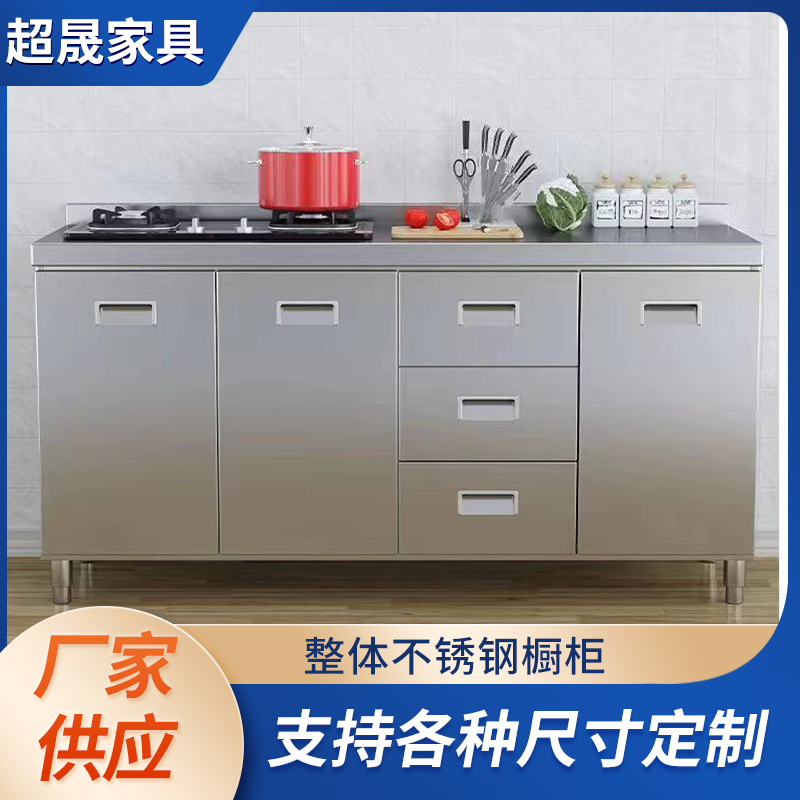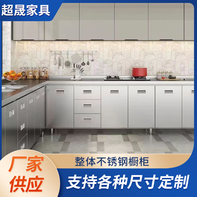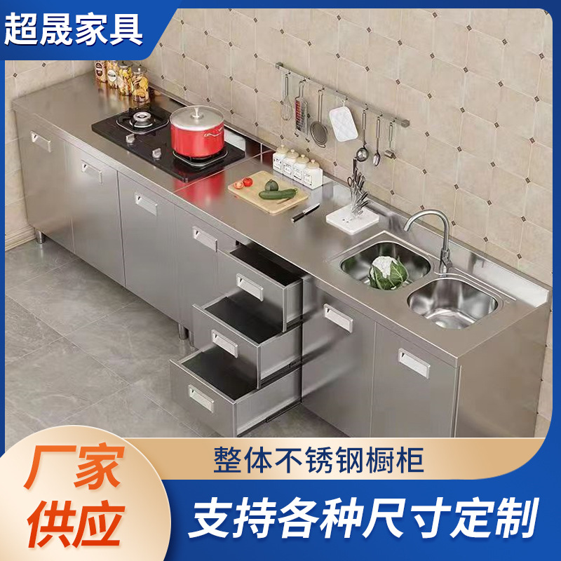 不锈钢一体橱柜厂家制作 简易灶台防水易清洁 厨房专用不锈钢橱柜