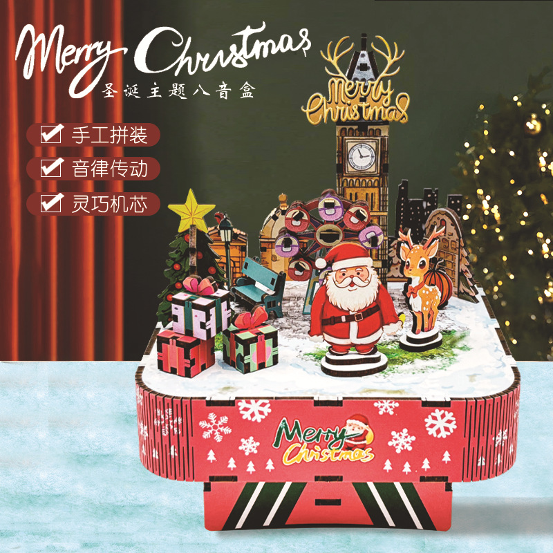 木质音乐盒手工拼装3d拼图创意旋转八音盒文创纪念品桌面摆件礼物