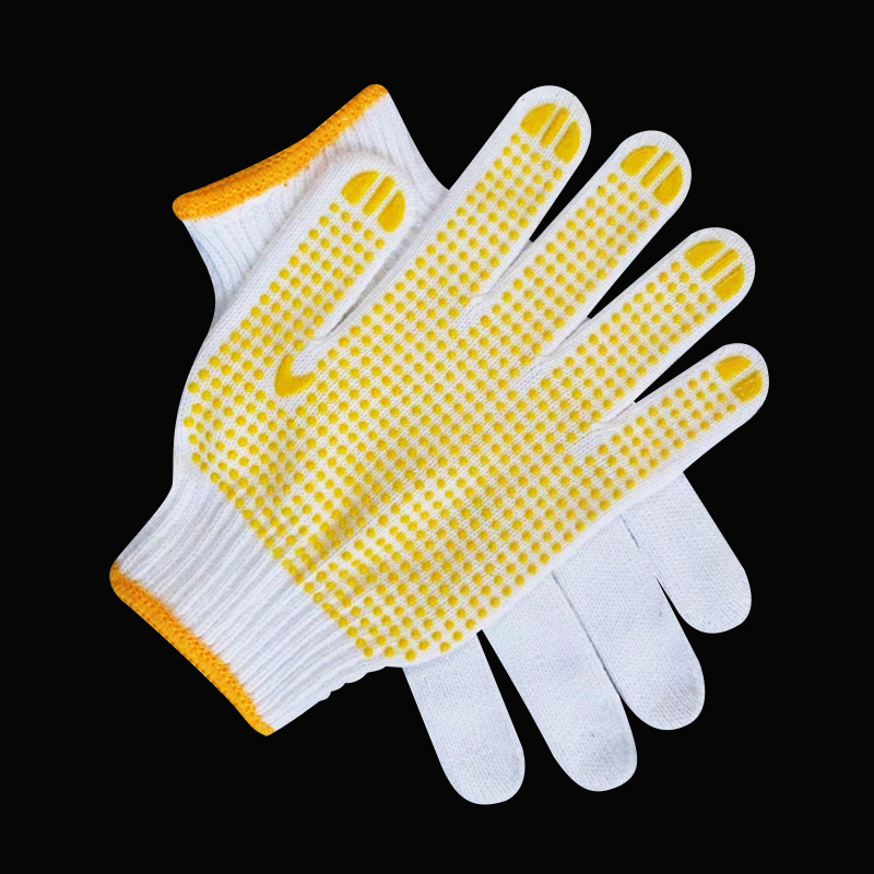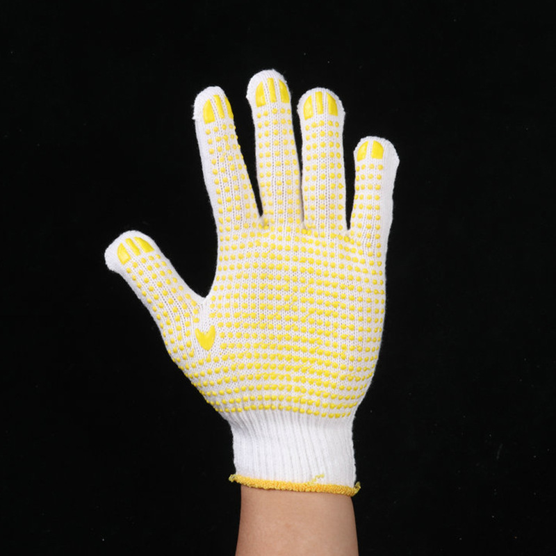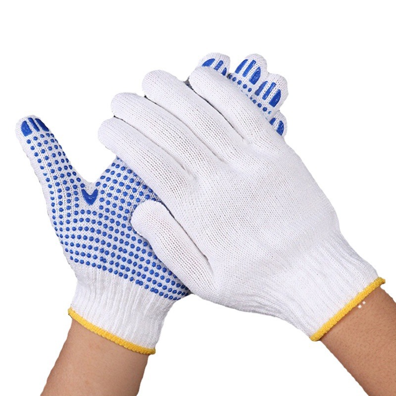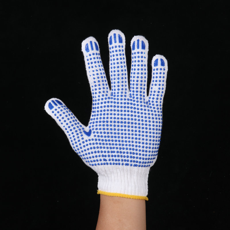 防滑PVC点塑600克白毛纺蓝点胶劳保手套建筑维修工地贴合棉纱手套