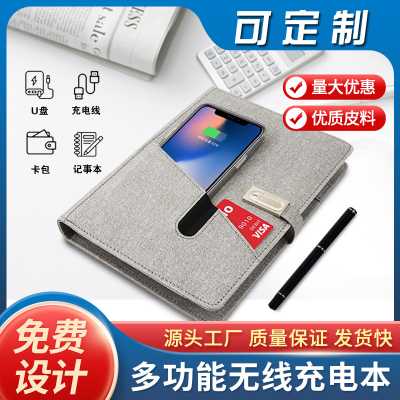 现货A5活页无线充电笔记本带u盘电源记事本厂家商务礼品套装D制