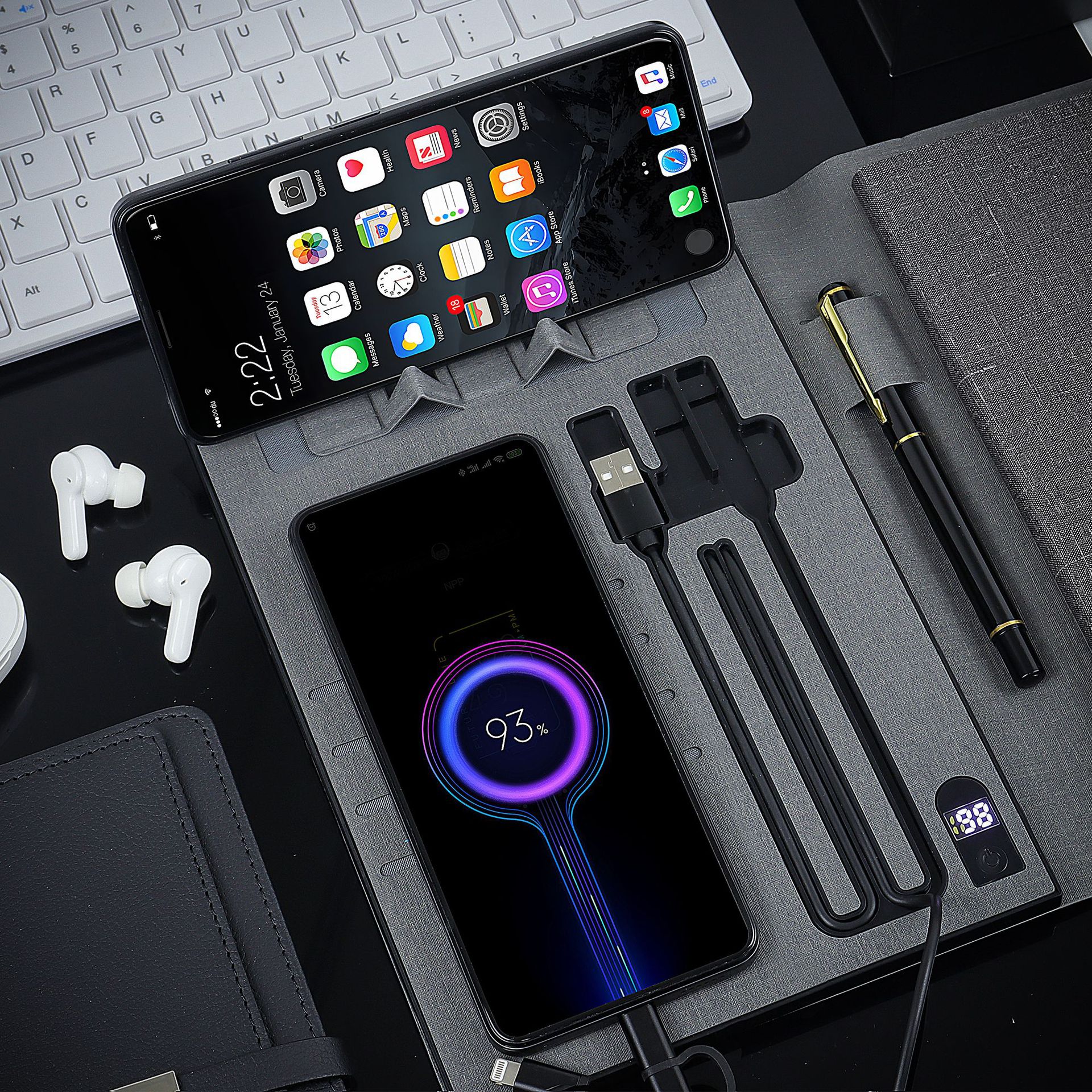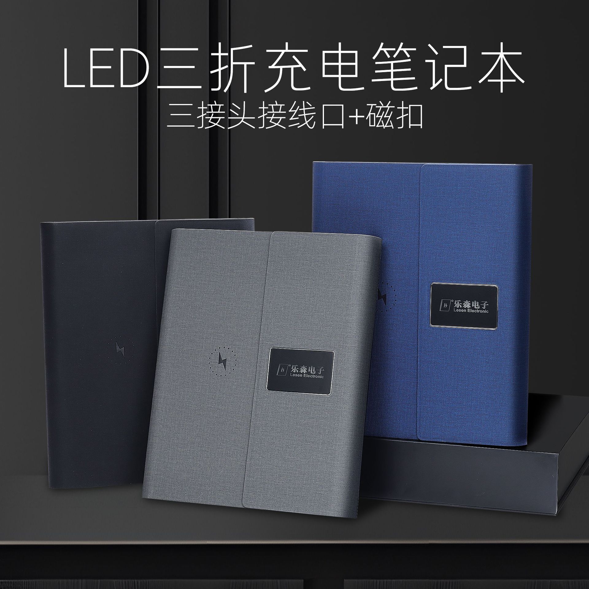 高端PU三折笔记本8000毫安无线充电笔记本 商务礼品套装印logo A5