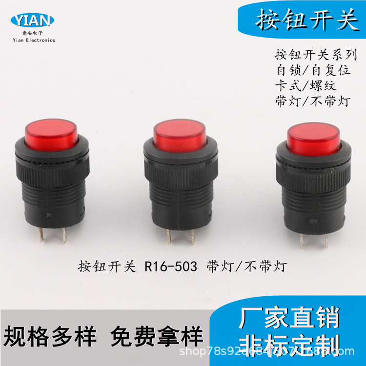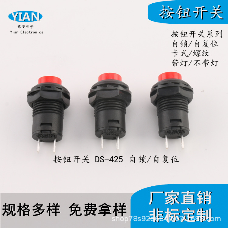 按钮开关DS211自锁自复位开孔10mm按键开关圆形游戏机开关