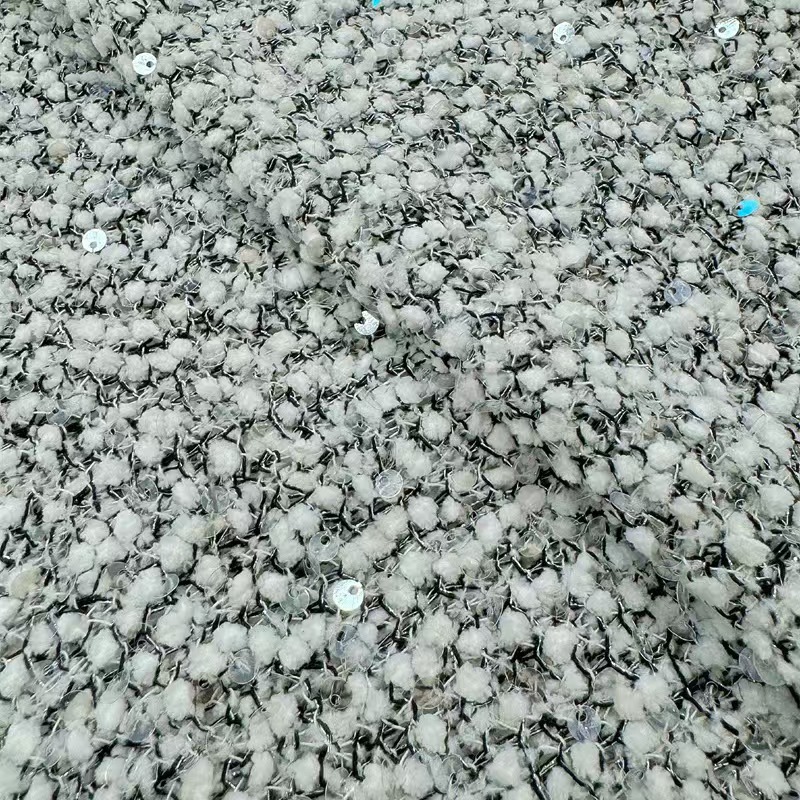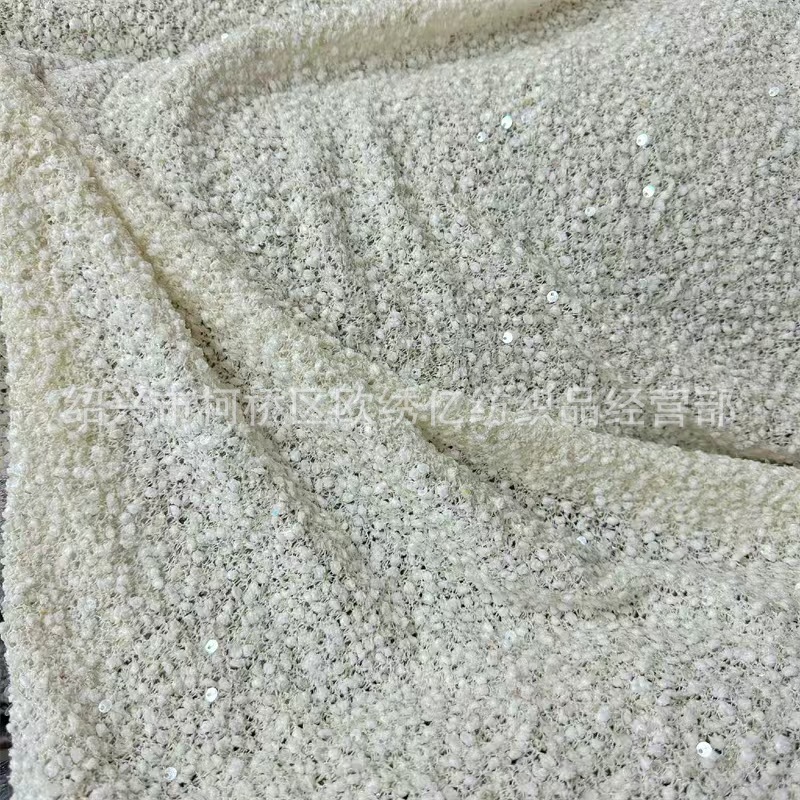 新款毛点布亮片绣花面料 多色小香风珠片绣花布料秋冬连衣裙外套