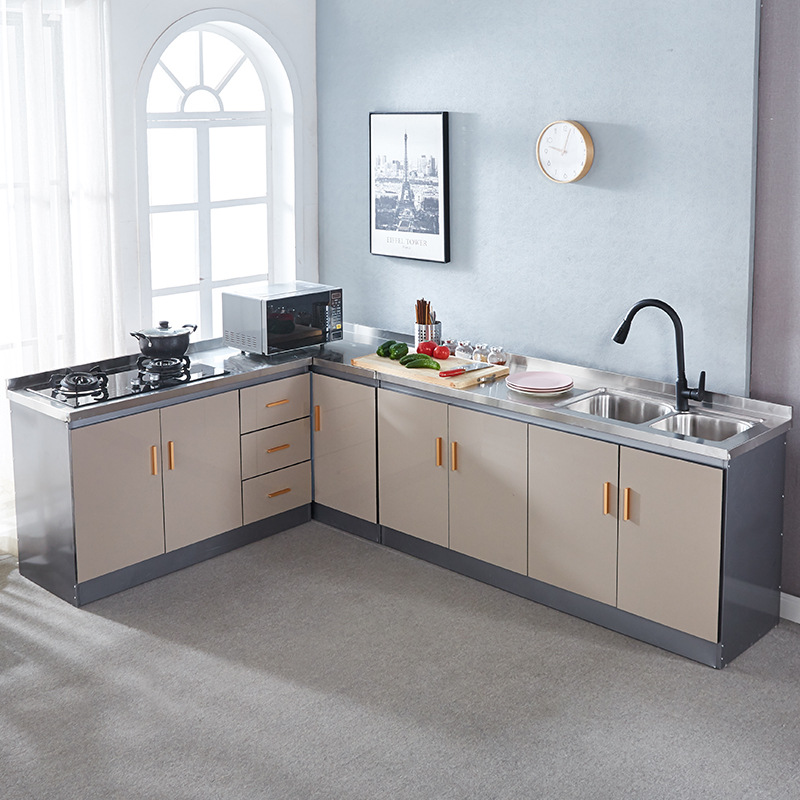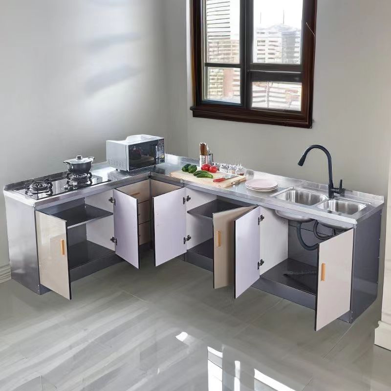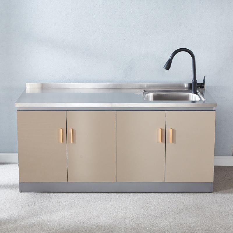 简易橱柜洗菜盆一体家用厨房不锈钢台面出租房经济型组合厨房橱柜