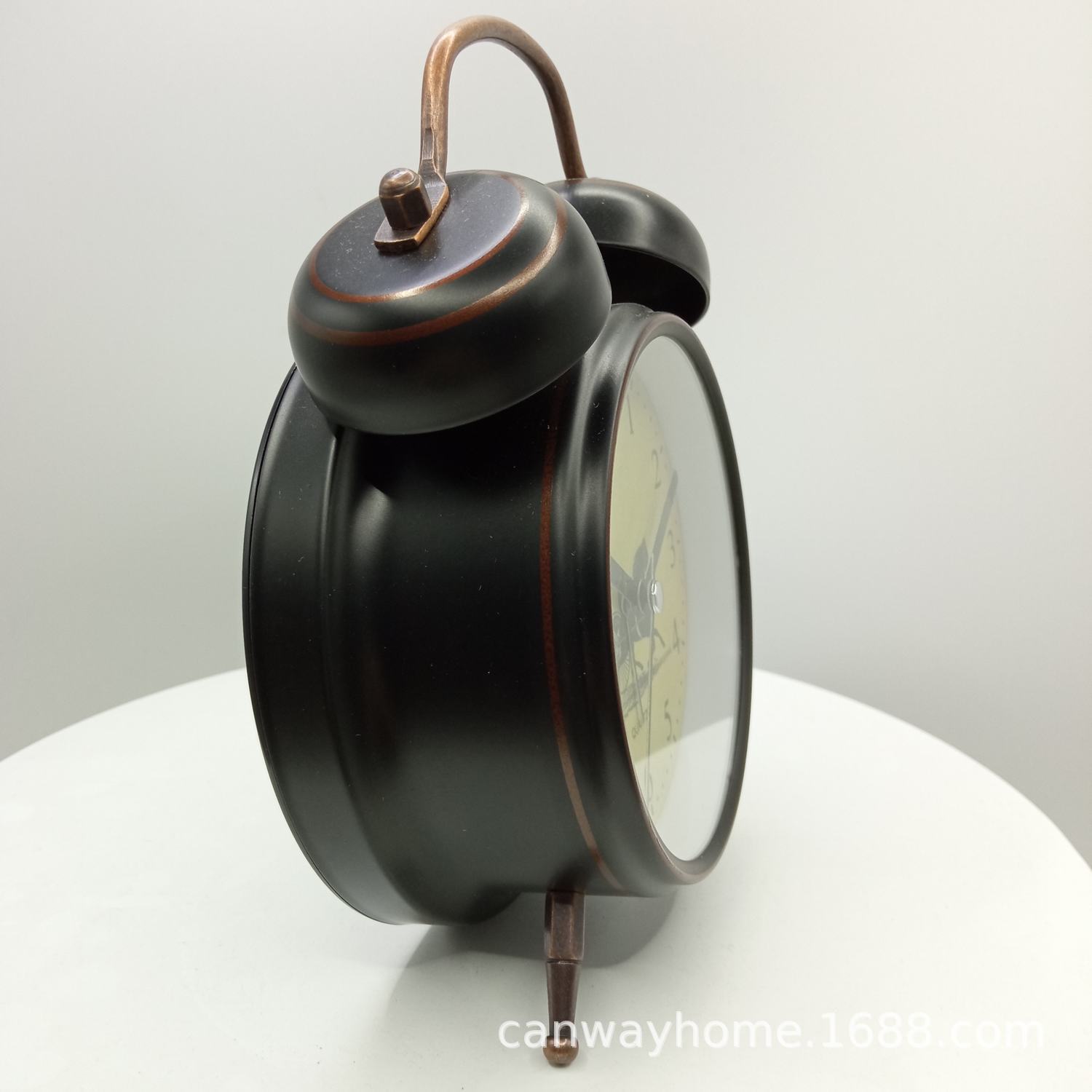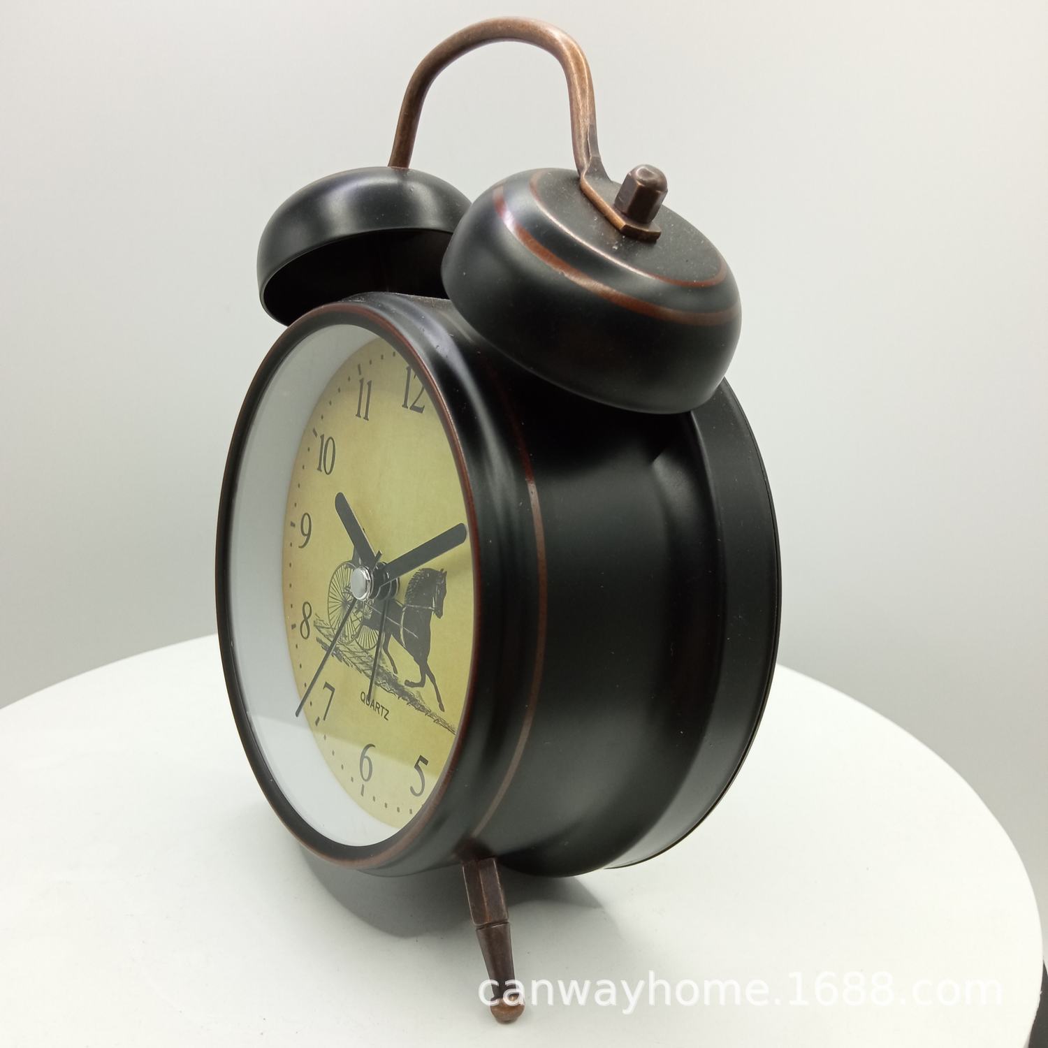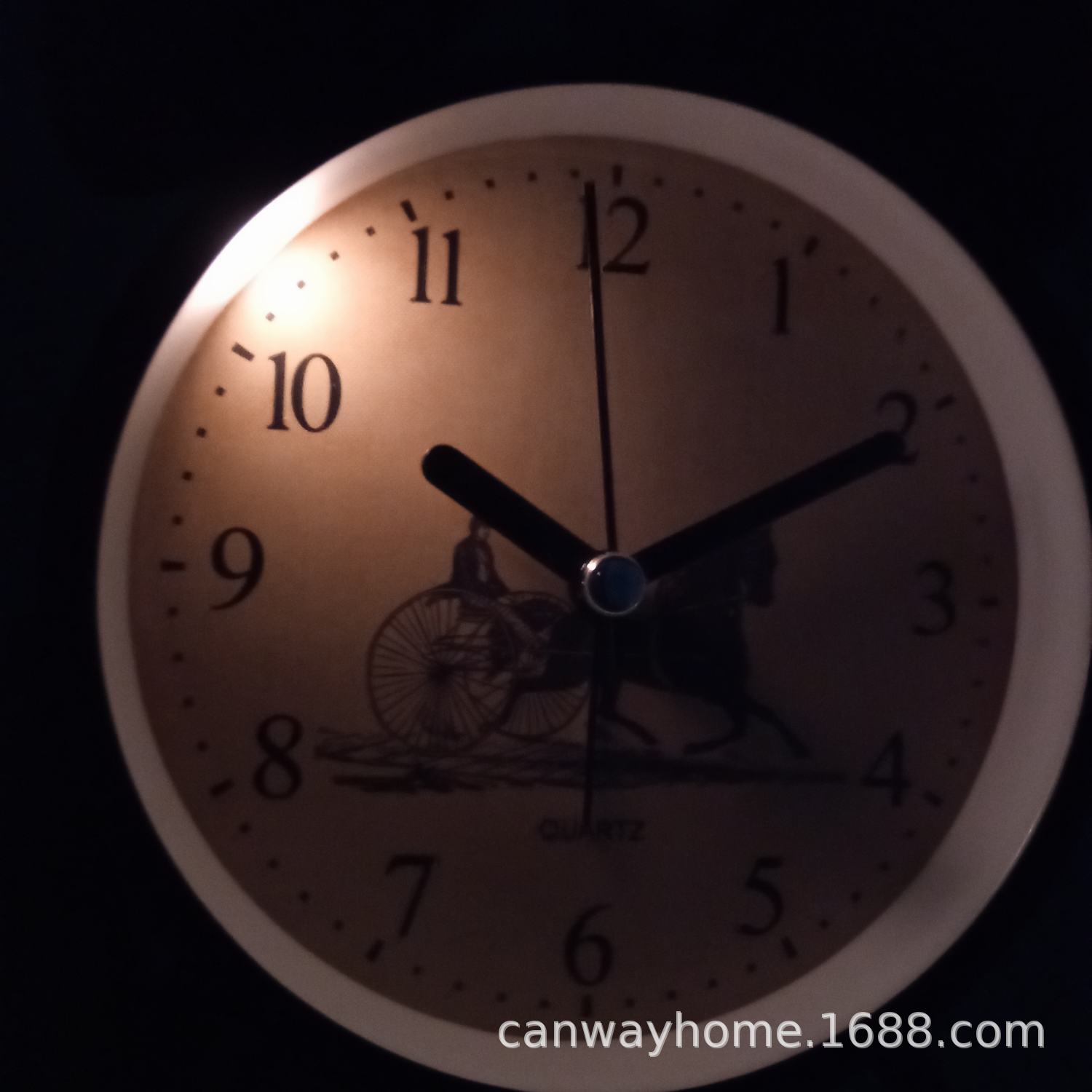 厂家批发4寸双打铃钟学生卧室客厅闹钟扫秒夜灯台钟静音扫秒闹钟