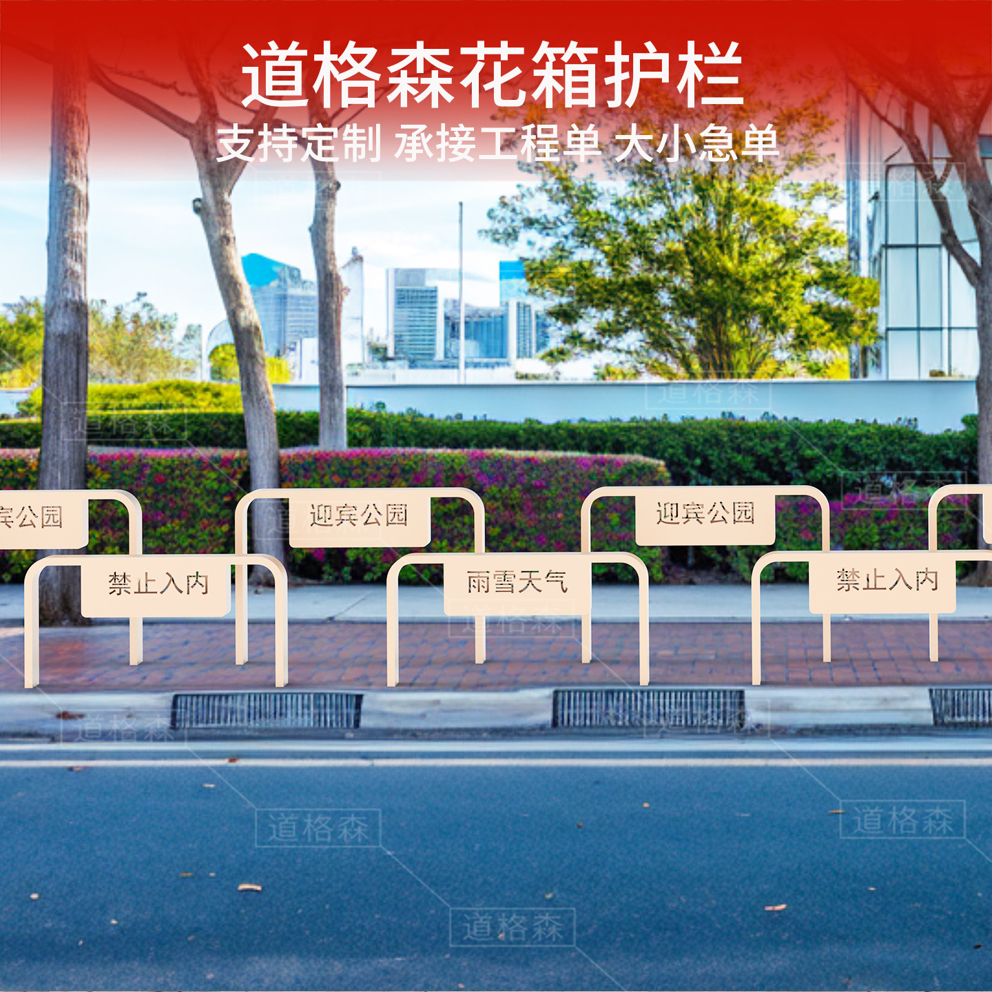 主营产品:市政道路隔离栏、护栏、花箱、凉亭、座椅