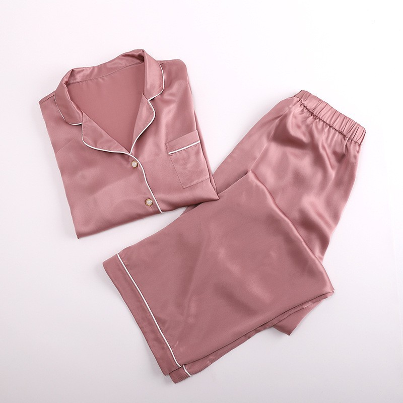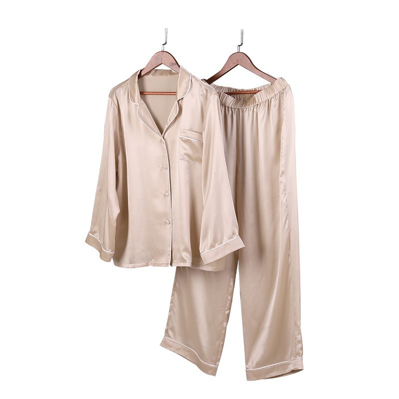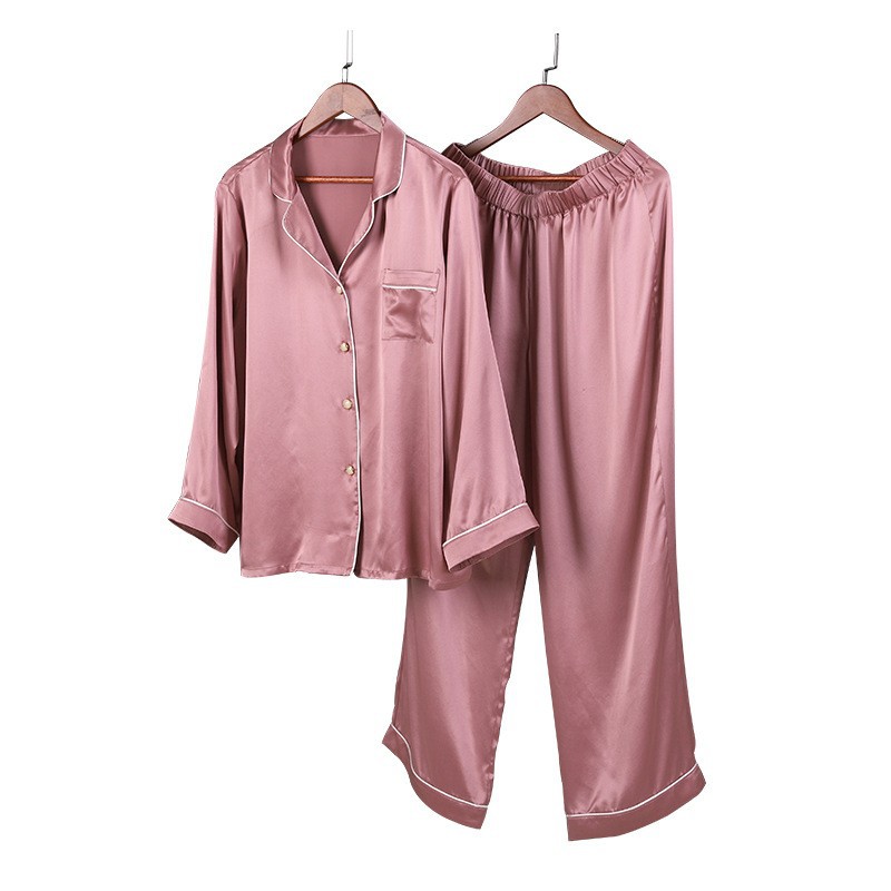 19姆米桑蚕丝真丝睡衣套装家居服长袖长裤真丝睡衣