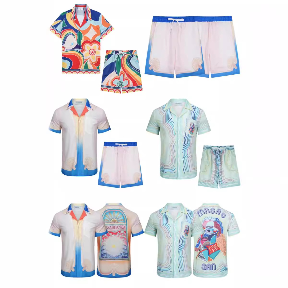 2024新款夏季CASA流行卡萨布兰卡数码喷印男士花式休闲衬衫宽松潮