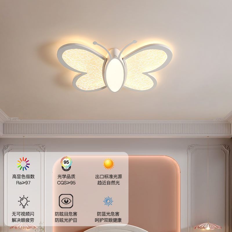 北欧奶油风蝴蝶儿童吸顶灯现代简约创意卡通浪漫护眼卧室书房灯具