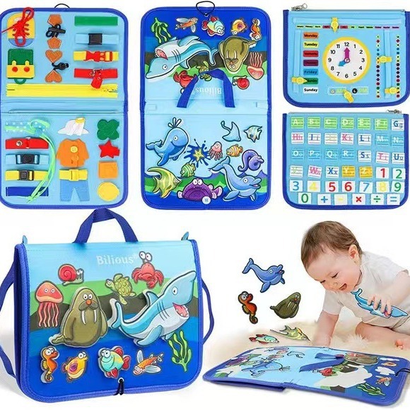 亚马逊新款加页毛毡忙碌板粉色女孩宝宝蒙氏早教益智儿童穿衣板