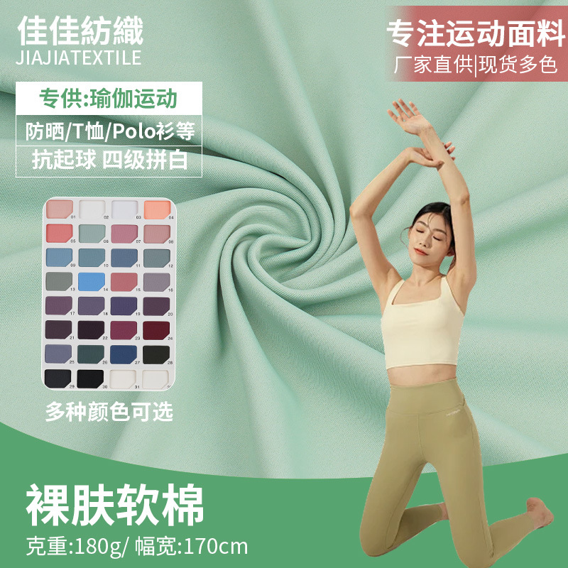 裸肤软棉涤氨双面布涤纶弹力针织布速干瑜伽服运动面料亲肤爽滑