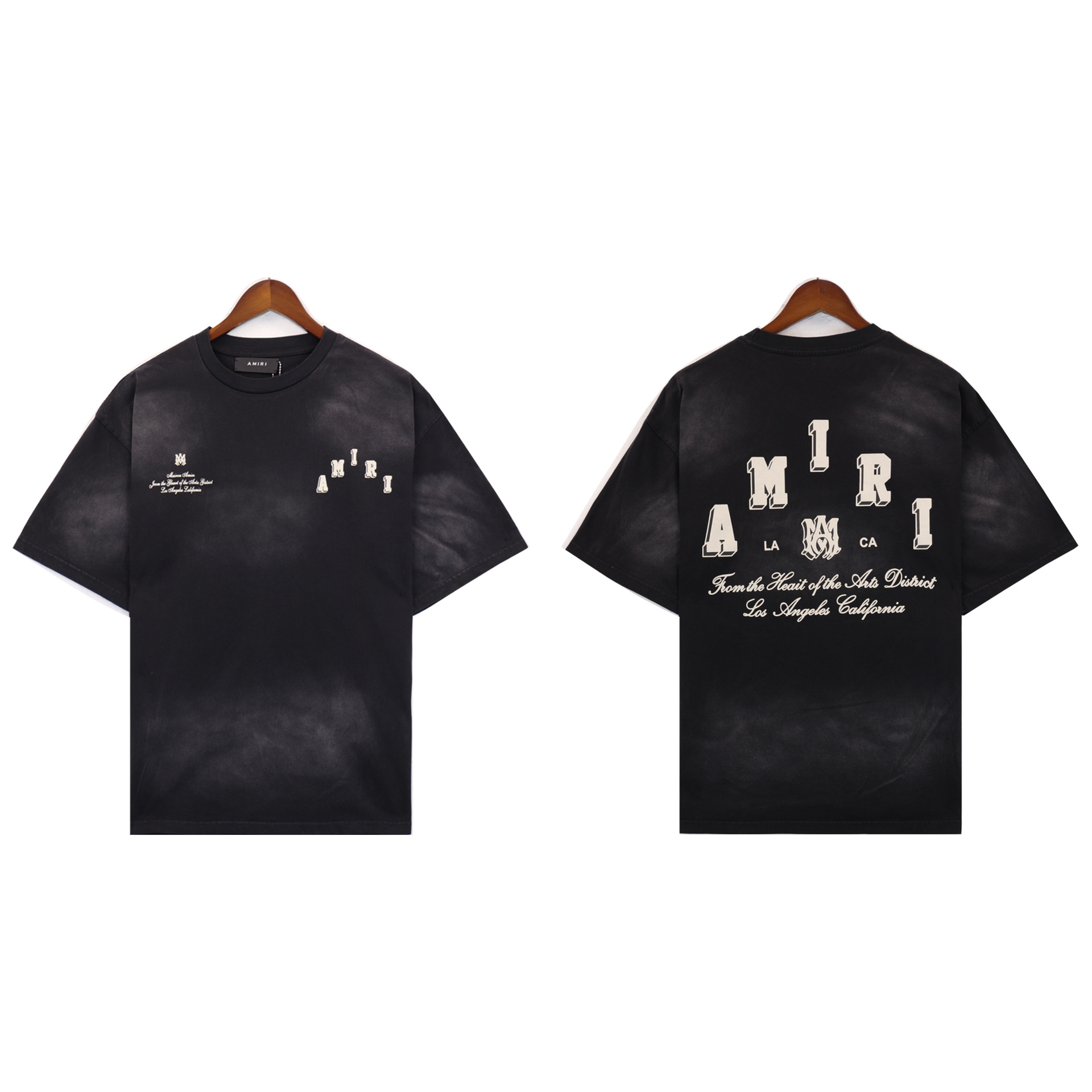 AMIRI新款水洗字母logo印花牛仔布大码男女短袖外贸爆款T恤休闲潮