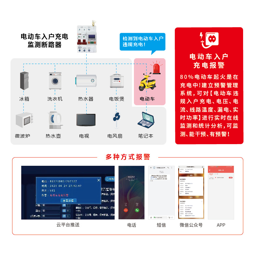 电动车充电监测监测器断路器报警断电安全解决方案预警管理漏电
