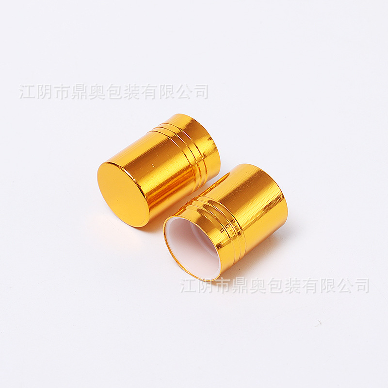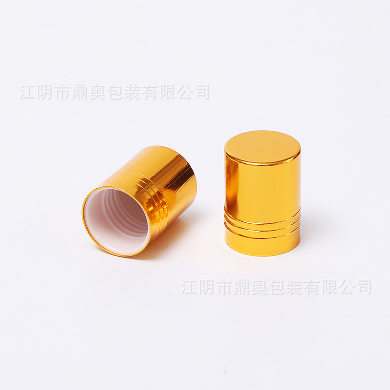 16牙滚珠盖 精油瓶大三线螺纹盖 金银色电化铝压丝滚珠盖