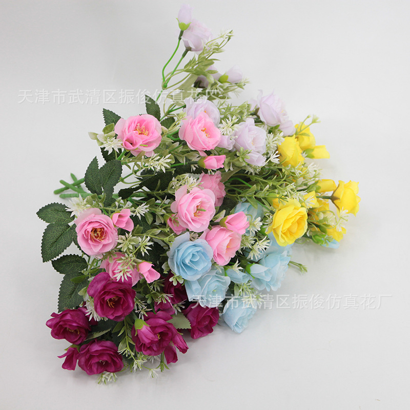 高档花仿真花把束花贵妃小玫瑰花7叉14头小把钻石玫瑰装饰仿真花