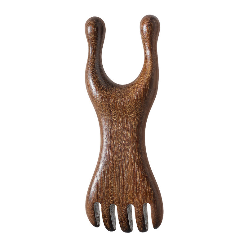 檀木小青蛙按摩梳子眼周经络梳子木五爪梳护眼刮鼻梁按摩刮