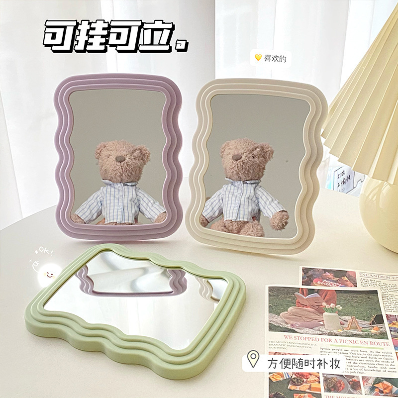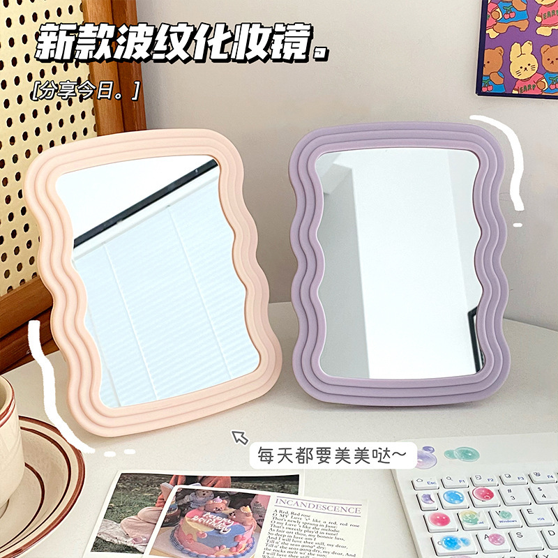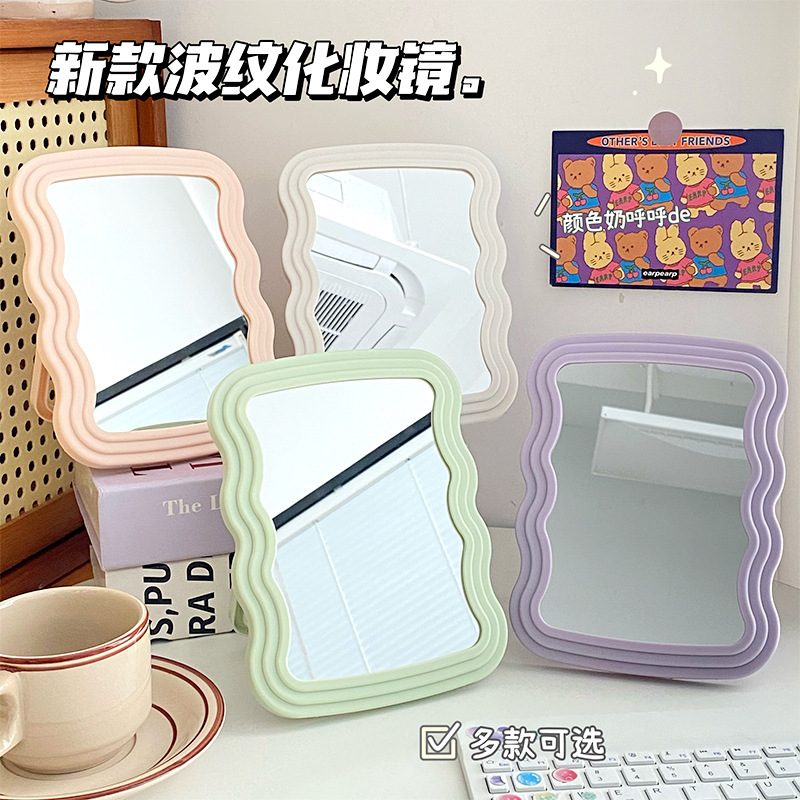 新款创意卡通波纹化台式化妆镜桌面公主梳妆镜学生可爱壁挂塑料镜