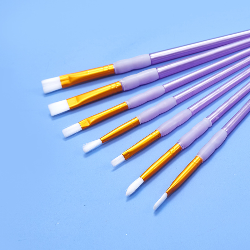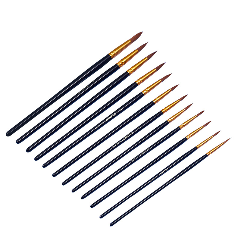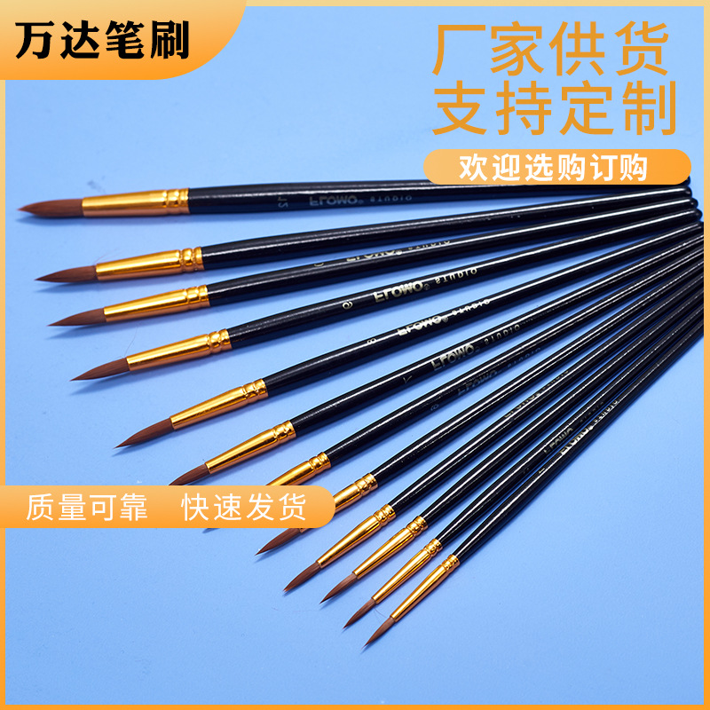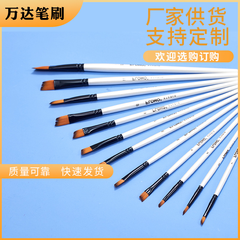 厂家批发跨境木杆圆头斜峰硅胶握手画笔勾线丙烯绘画刷水粉水彩笔