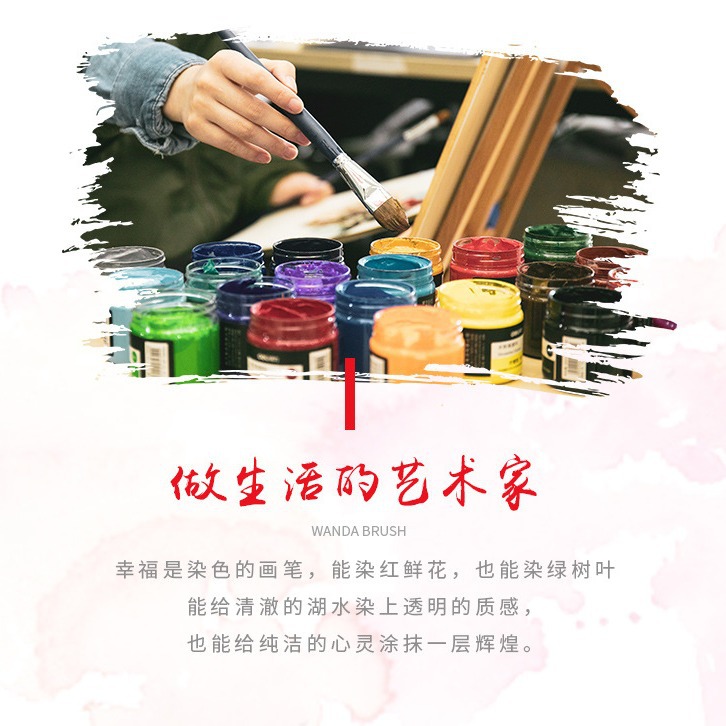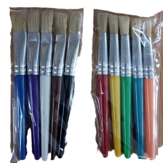 新款糖果色扁头油画笔木质杆绘画圆头画笔成人儿童颜料笔油画彩绘