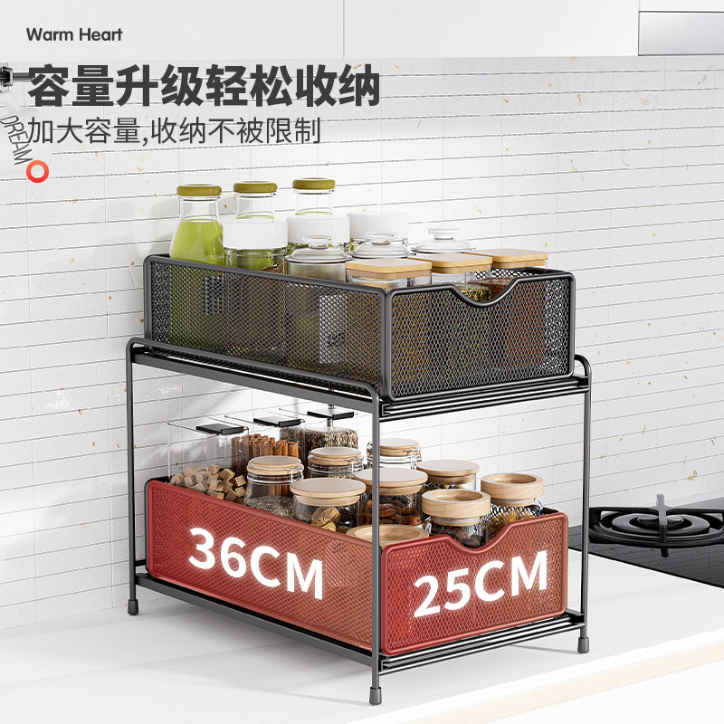 家用厨房置地收纳架抽拉式零食储物架多功能置物架蔬菜水果置物架