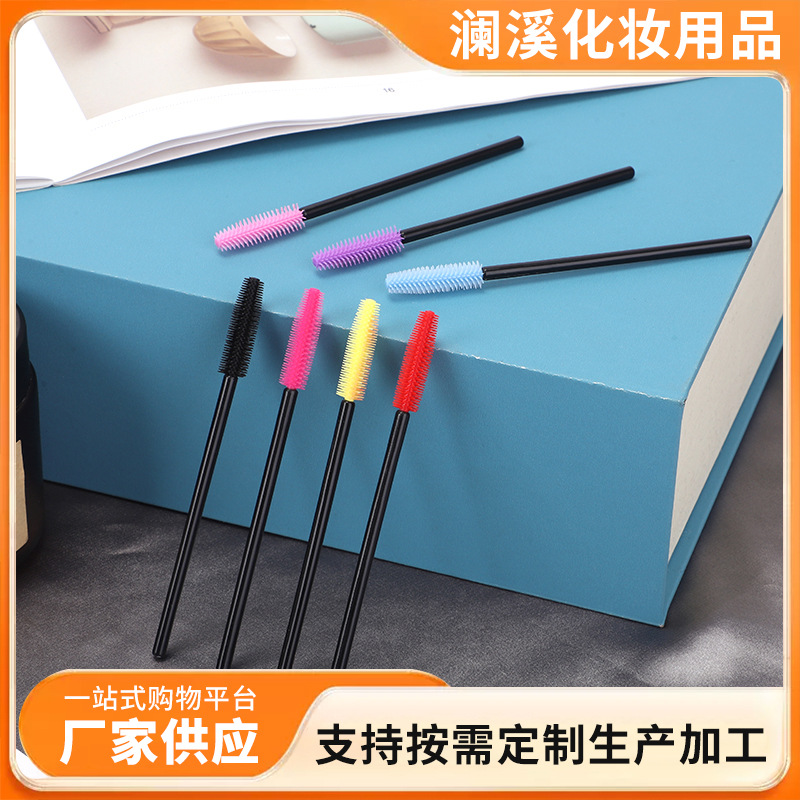 硅胶睫毛刷螺旋 便携嫁接睫毛刷 彩色硅胶刷头黑色实心棒化妆刷