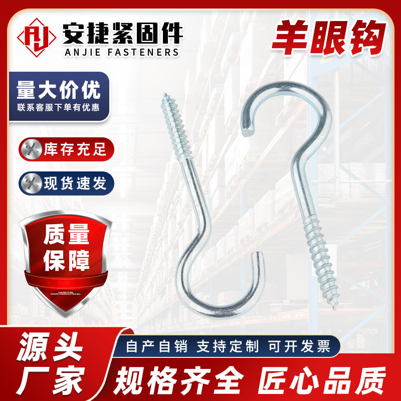 厂家批发羊眼钩开口镀锌羊眼螺丝羊角钩螺钉风钩问号钩 灯钩