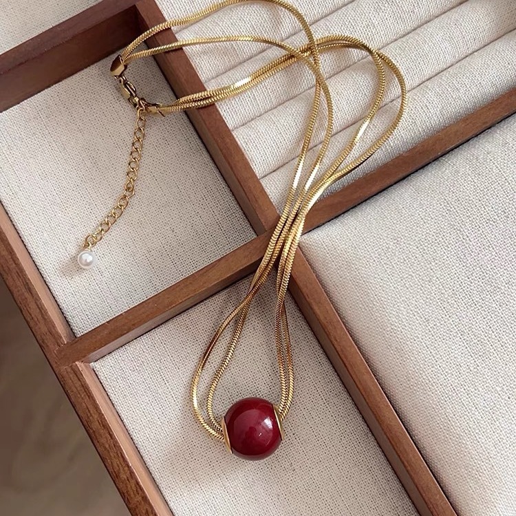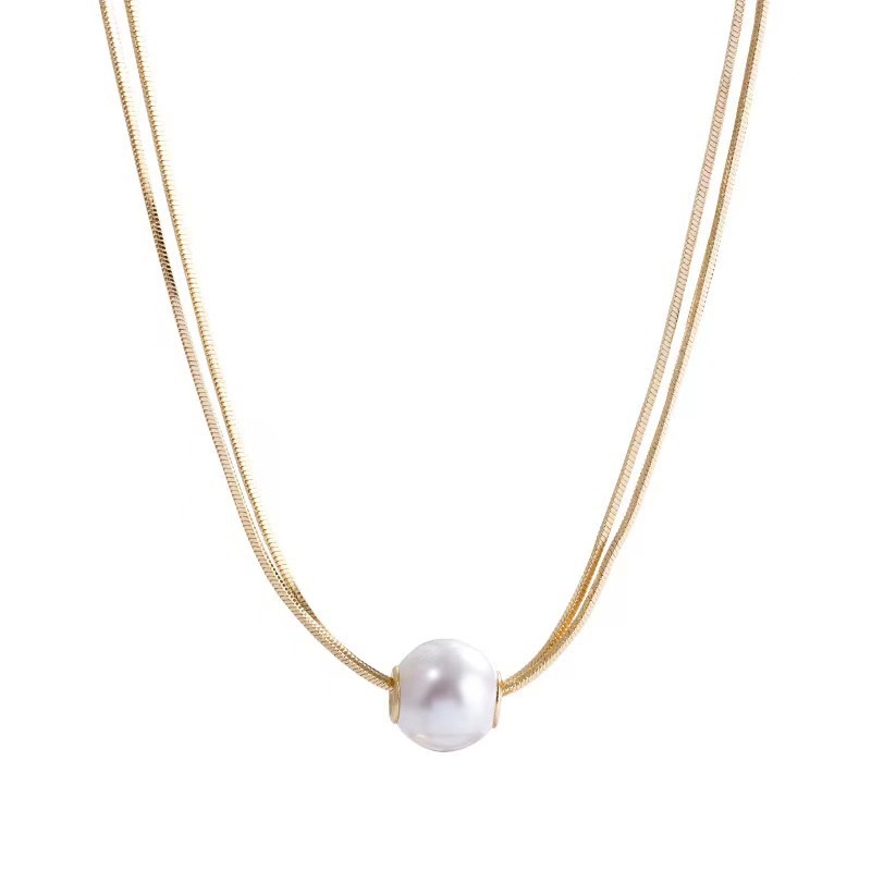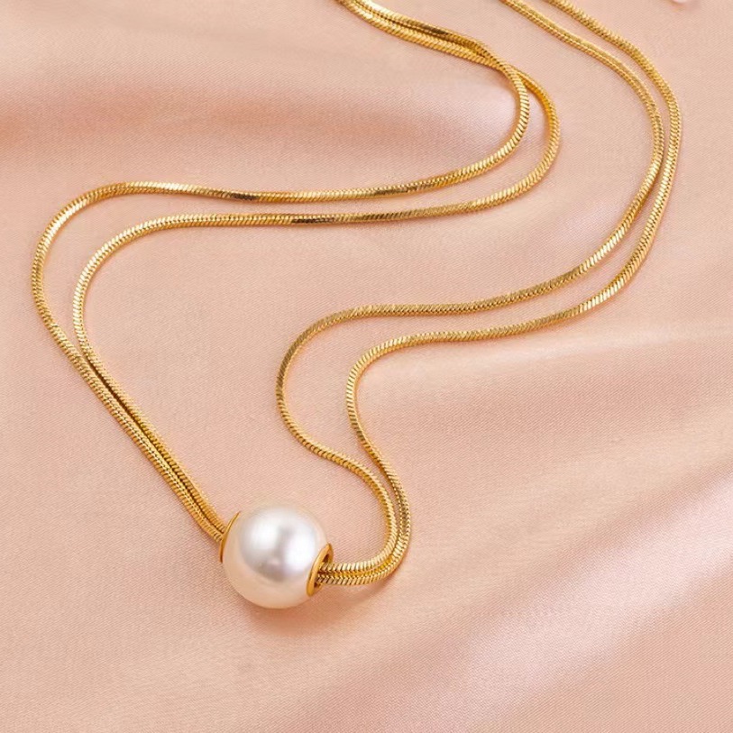 钛钢珍珠项链2024新款双层叠戴时尚潮流气质轻奢高级感锁骨链批发