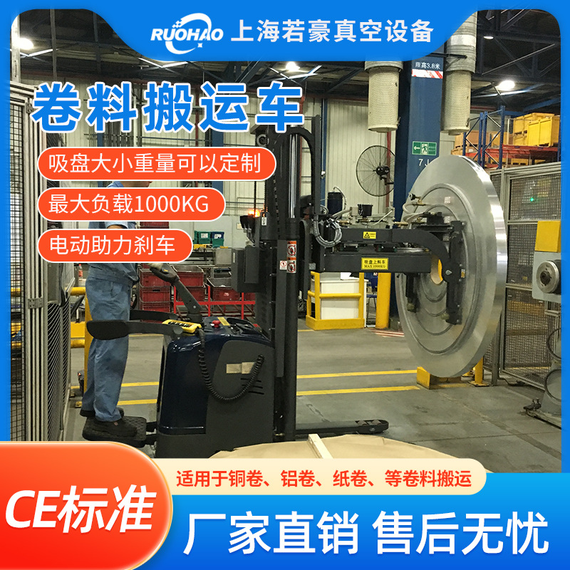 定制卷料翻转机卷料叉车吸盘搬运车铝卷搬运铝箔卷搬膜料运输厂家