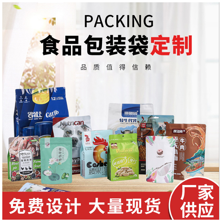 宠物食品包装袋狗粮冻干猫粮猫砂袋铝箔密封四边八边封拉链袋