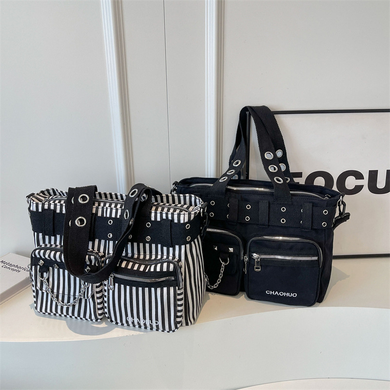 跨境帆布包包女托特包大容量可斜挎2024新款百搭手提大学生上课包
