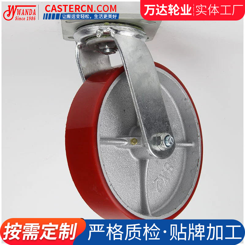 美式万向轮重型脚轮厂家加工红色橡胶万向轮聚氨酯脚轮