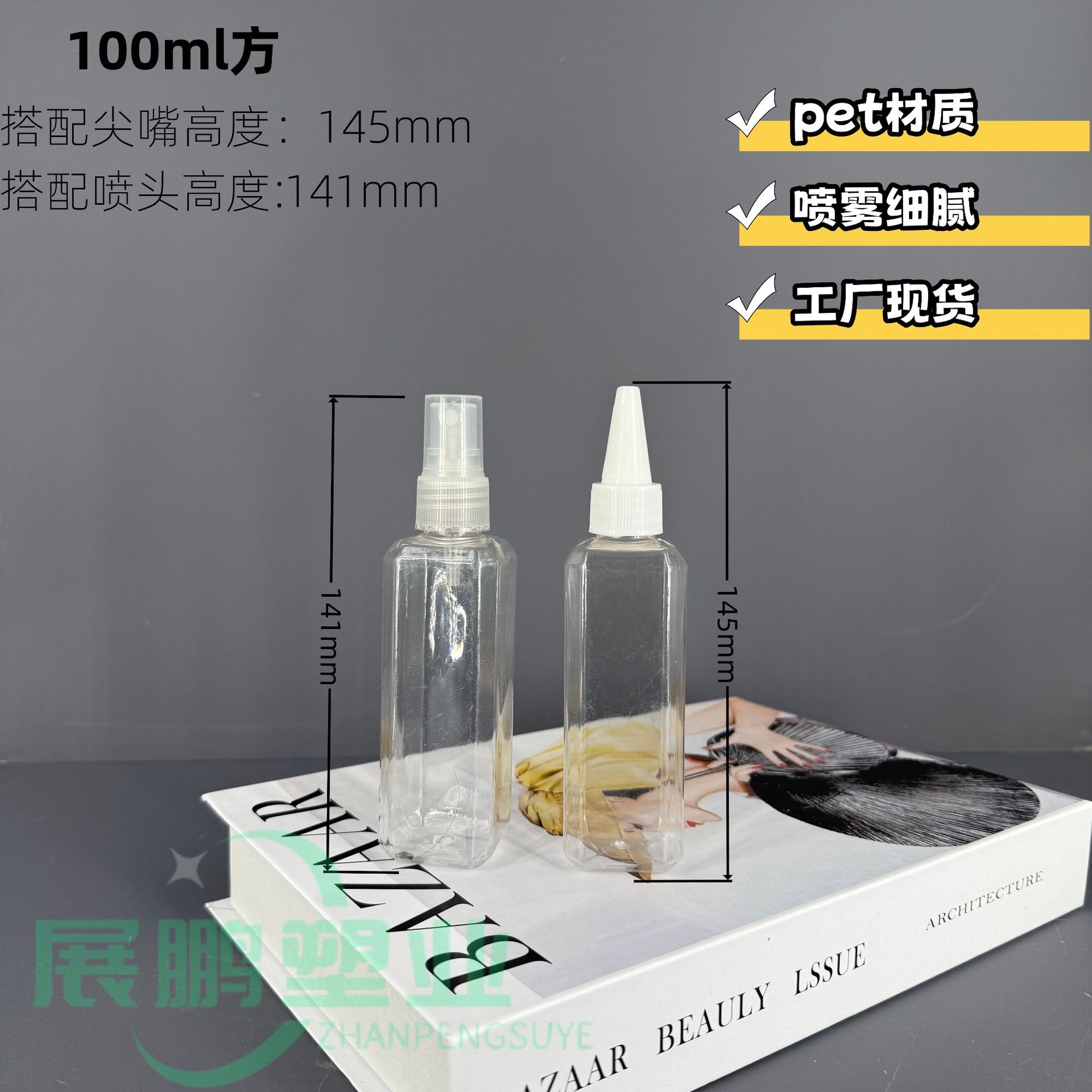现货100mlpet喷雾瓶酒精消毒液分装喷雾瓶方型尖嘴瓶花露水喷瓶