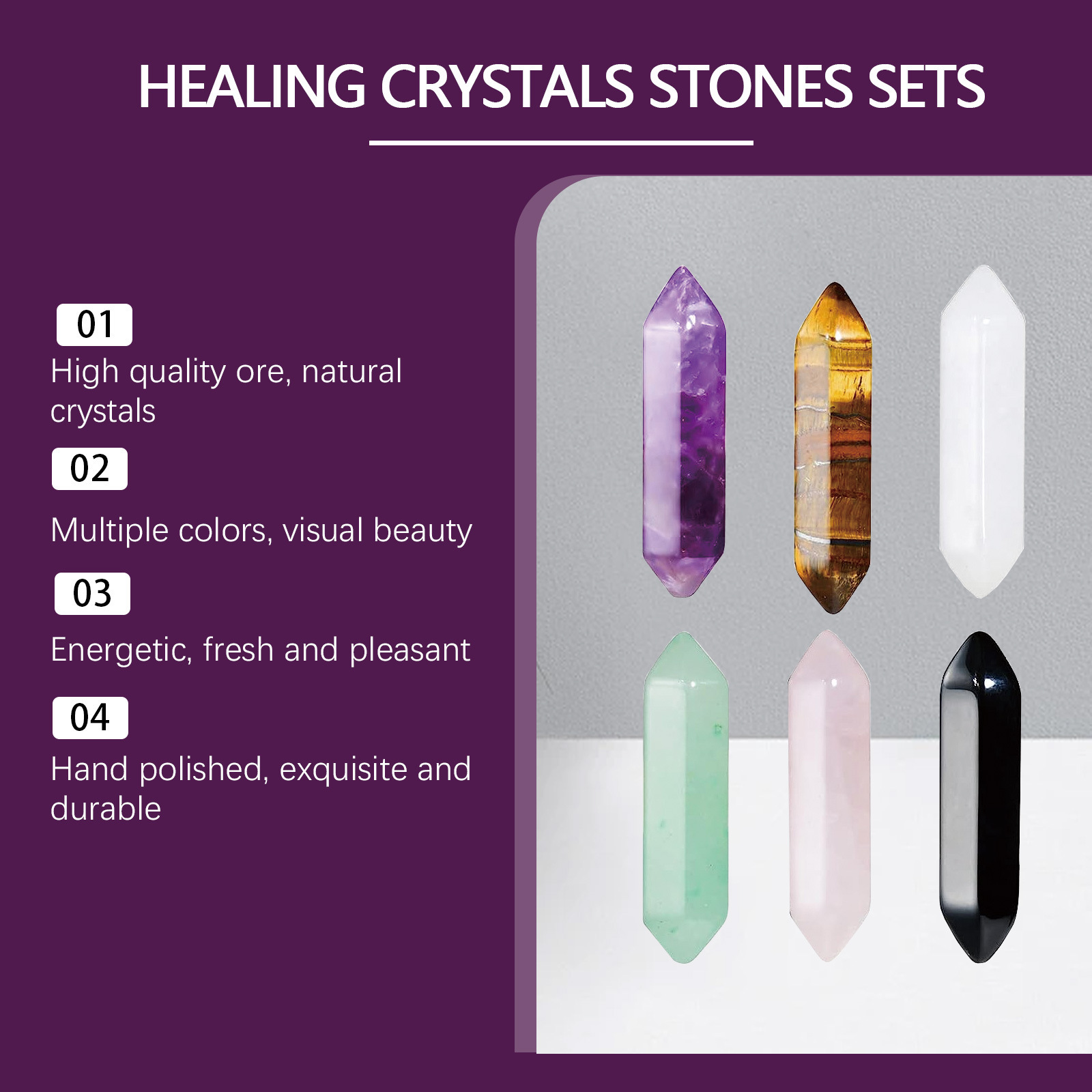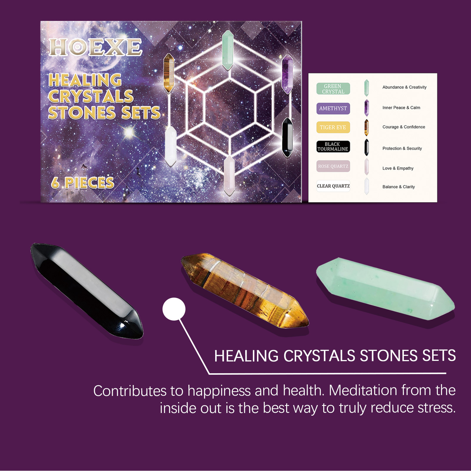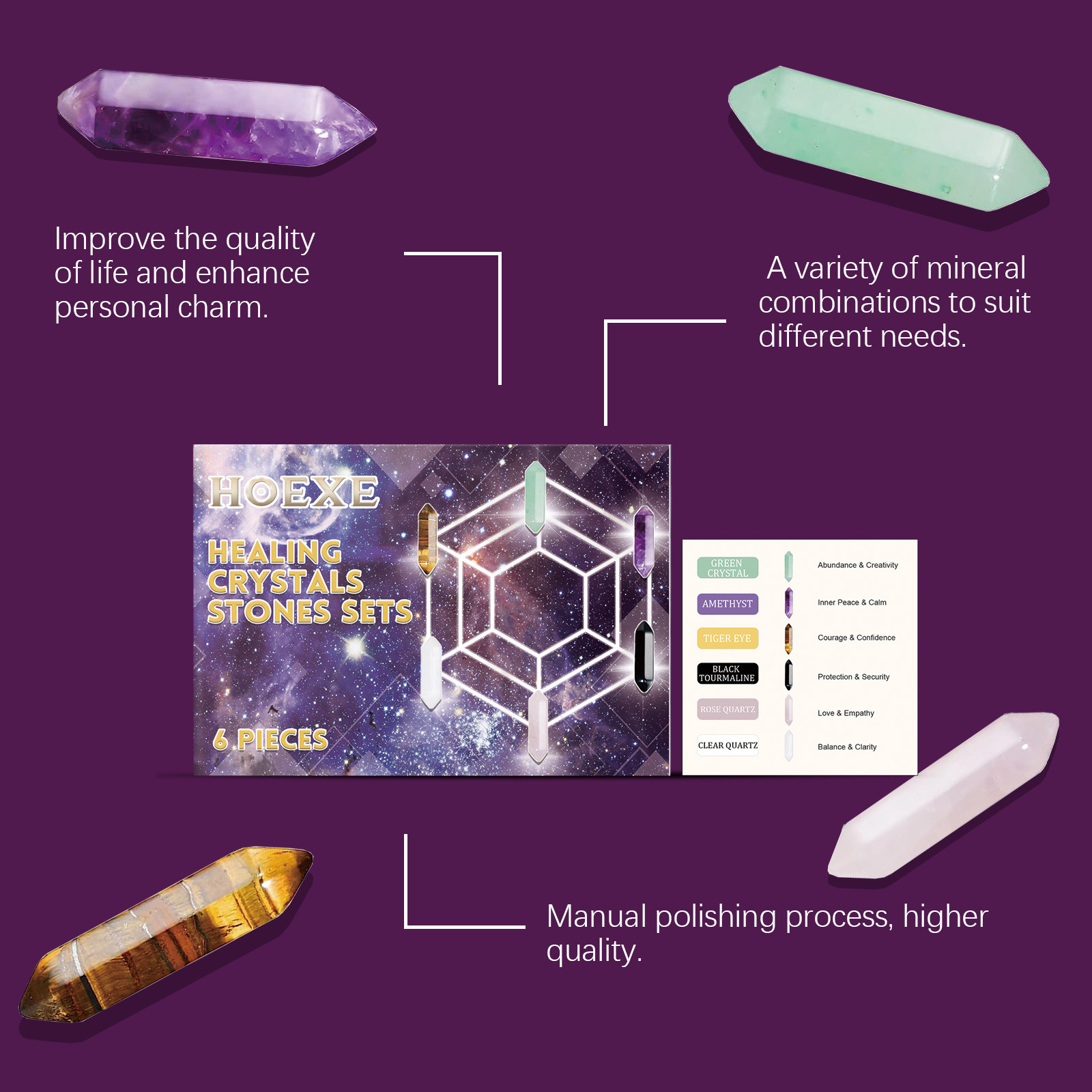 Hoexe 六角形水晶石套装 水晶石虎眼石黑曜石室内装饰水晶摆件