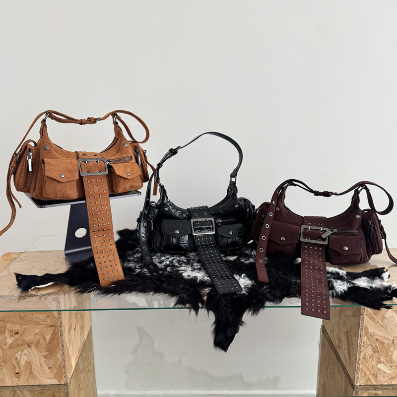 小众复古朋克风辣妹腋下包铆钉包2025新款潮牌单肩斜挎手提机车包