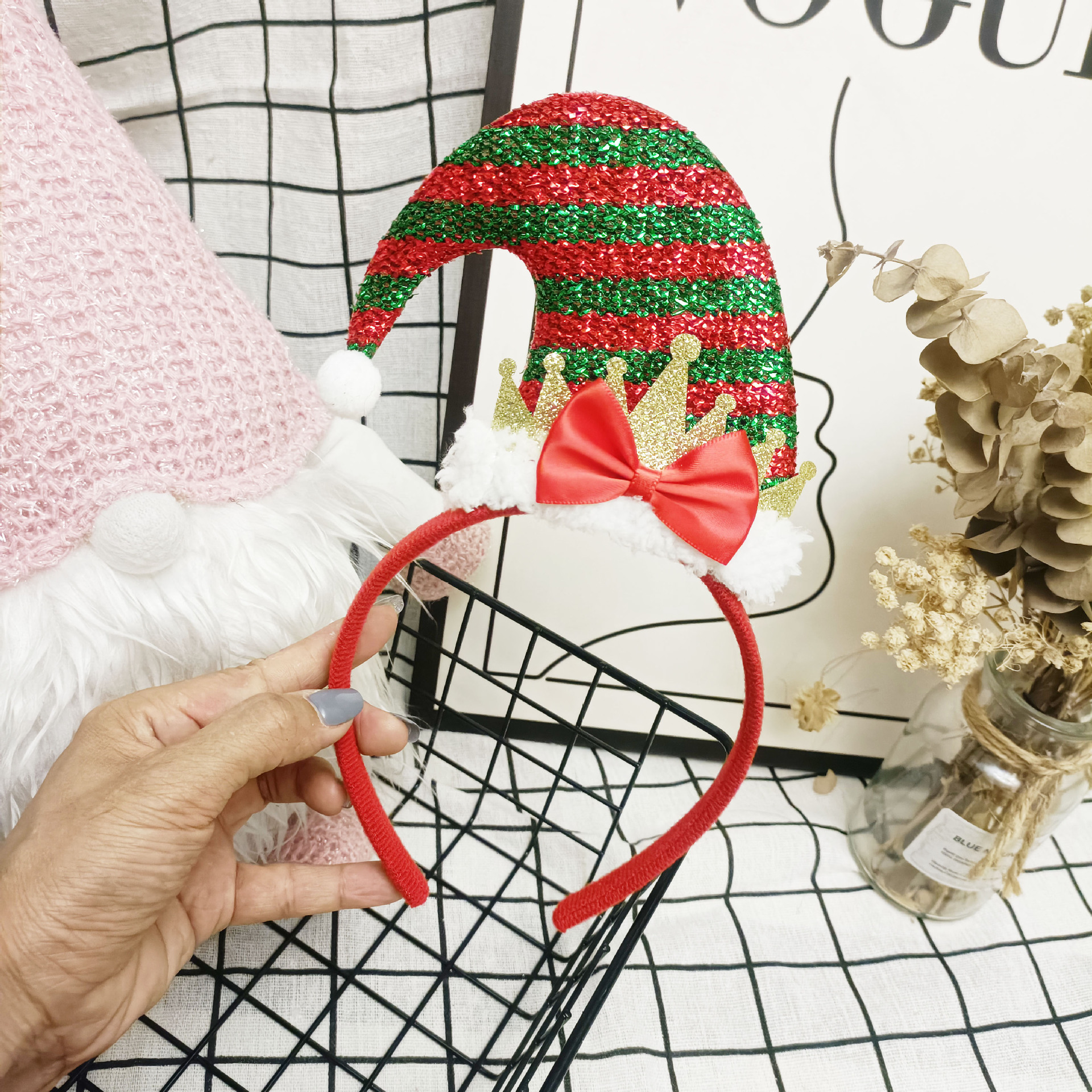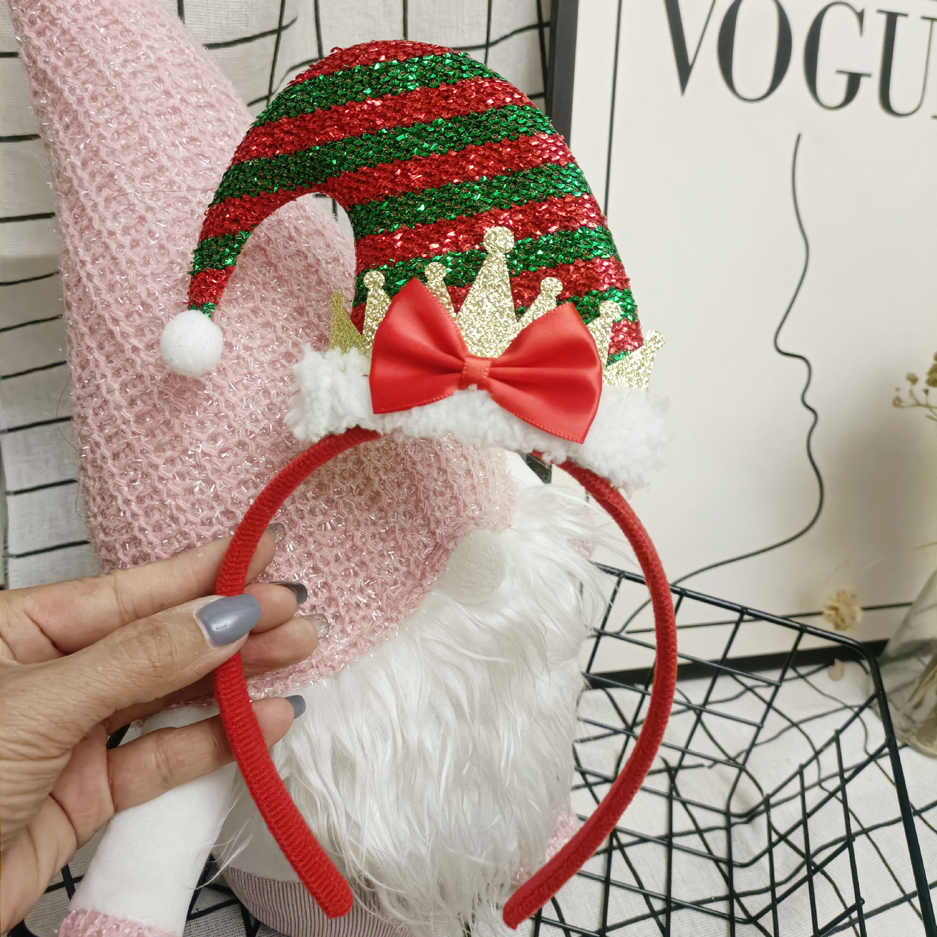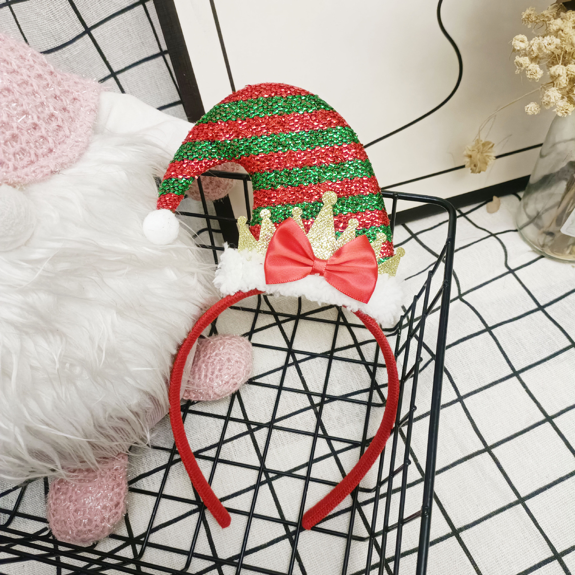 圣诞发箍发夹圣诞帽蝴蝶结毛绒头箍聚会派对节日装饰
