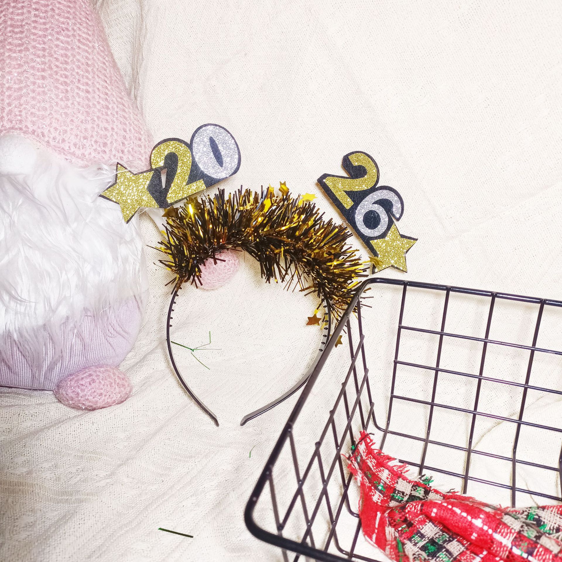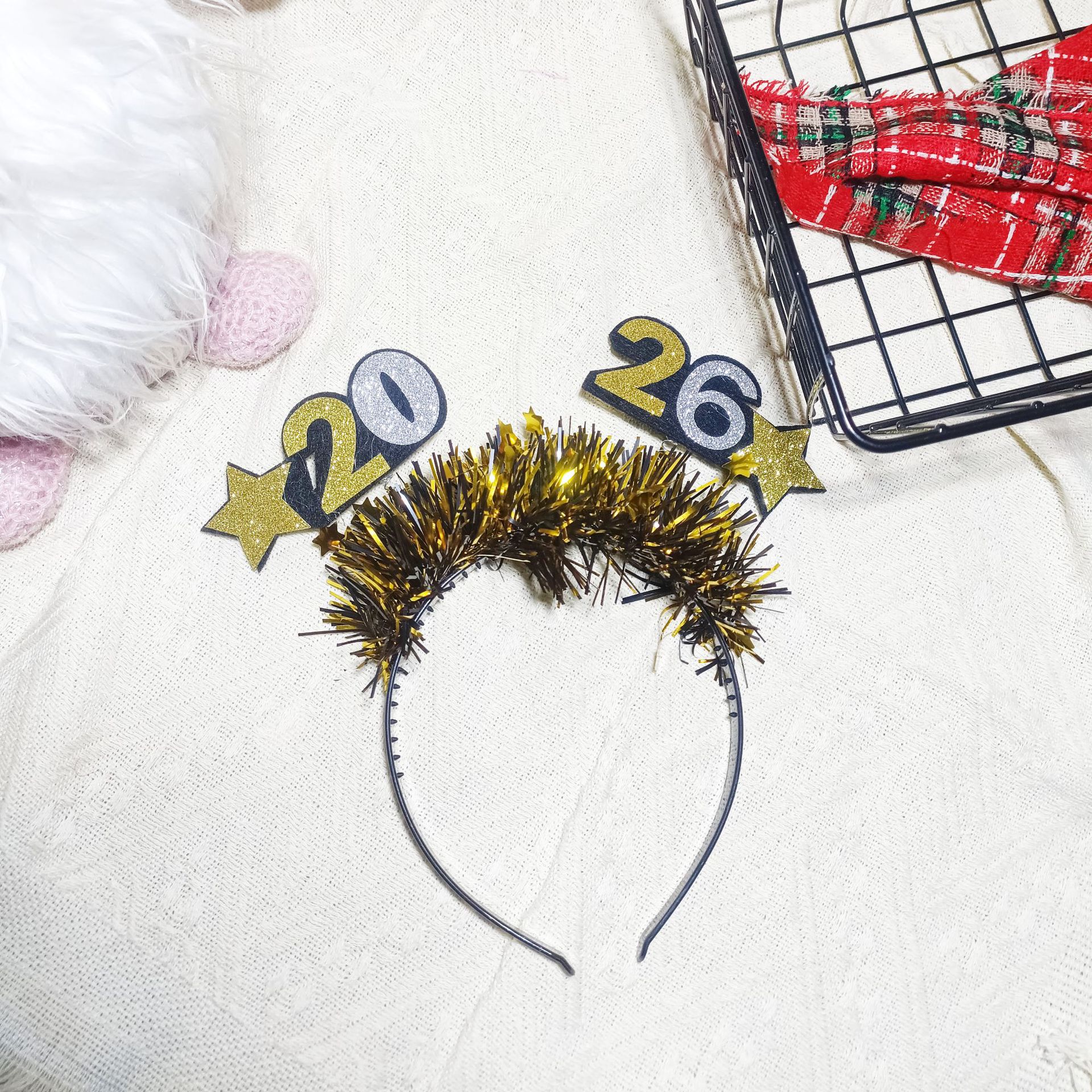 新款2026新年节日派对主题装扮发箍跨年拍照道具happy new year